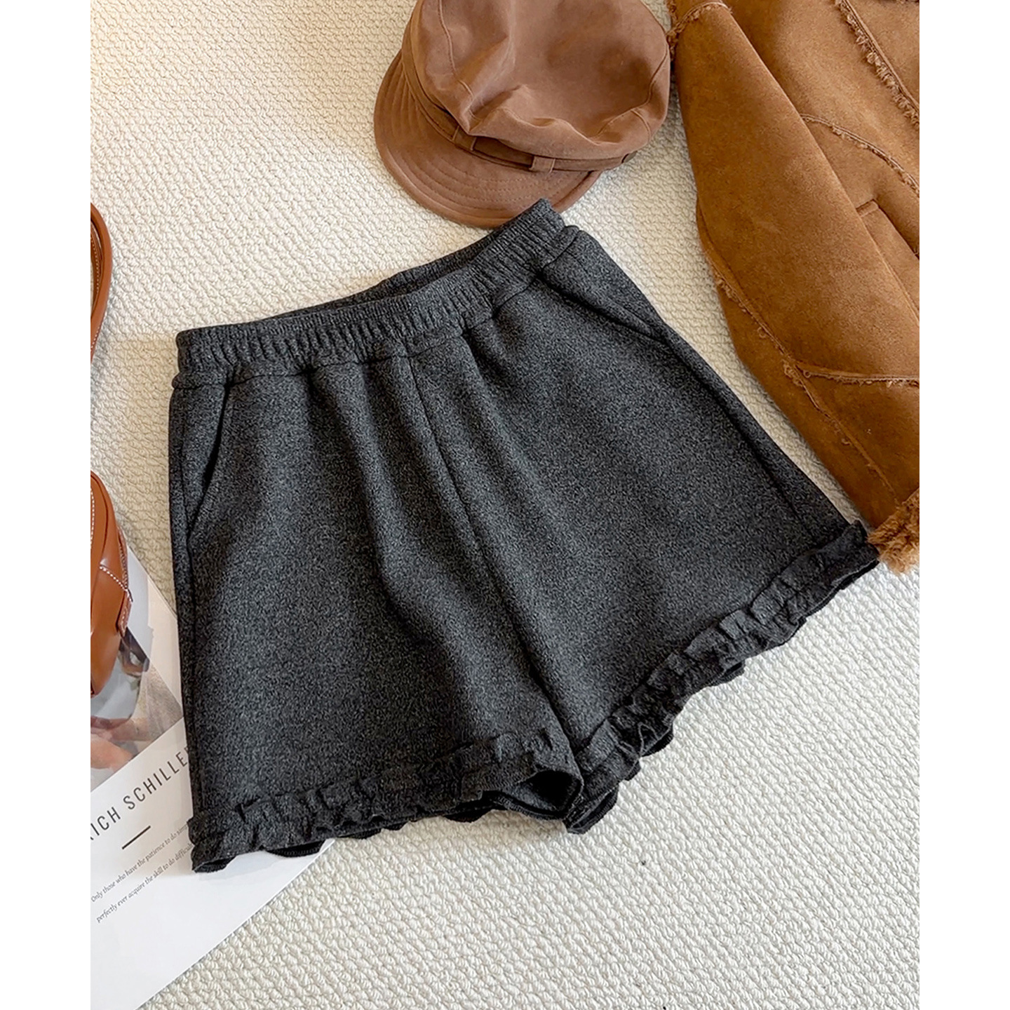 木耳边仿羊绒软糯短裤女秋冬日韩松紧腰加绒百搭外穿阔腿a字靴裤