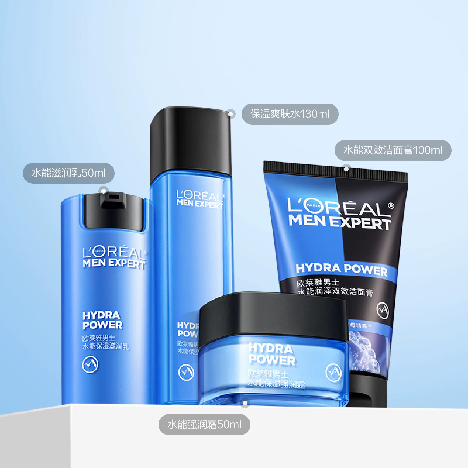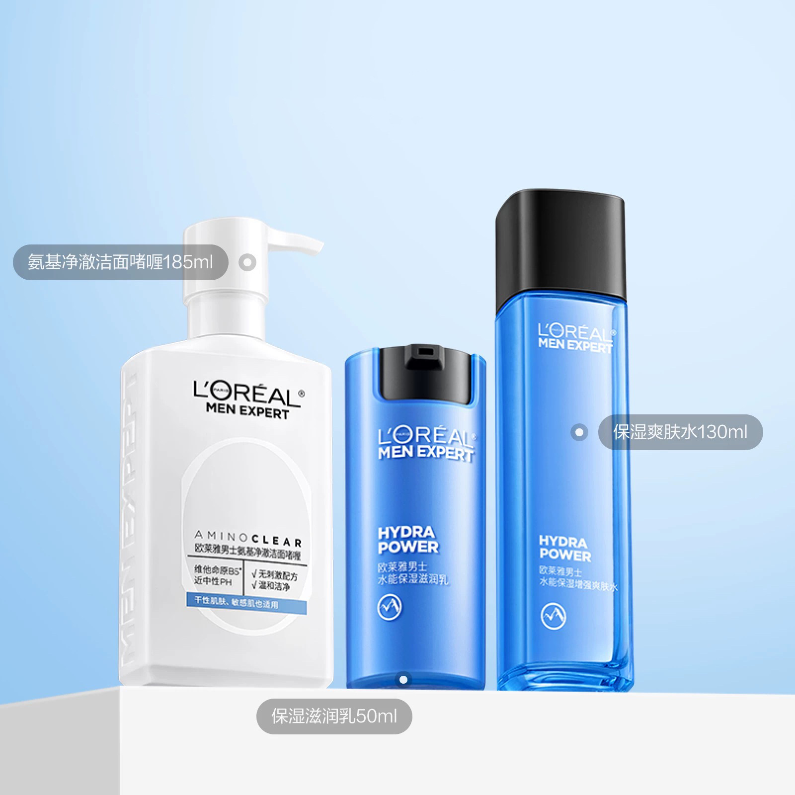 欧莱雅男士护肤品套装三件套水能洗面奶补水保湿控油清爽送礼物