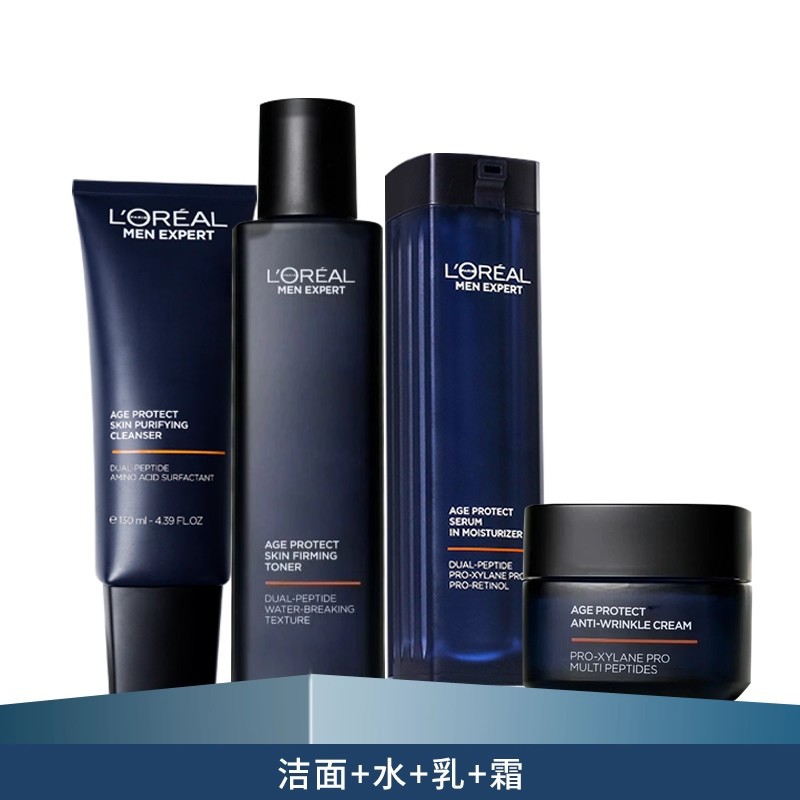 欧莱雅男士青春肌源爽肤淡纹水乳洗面奶面霜套装护肤品送男友保湿