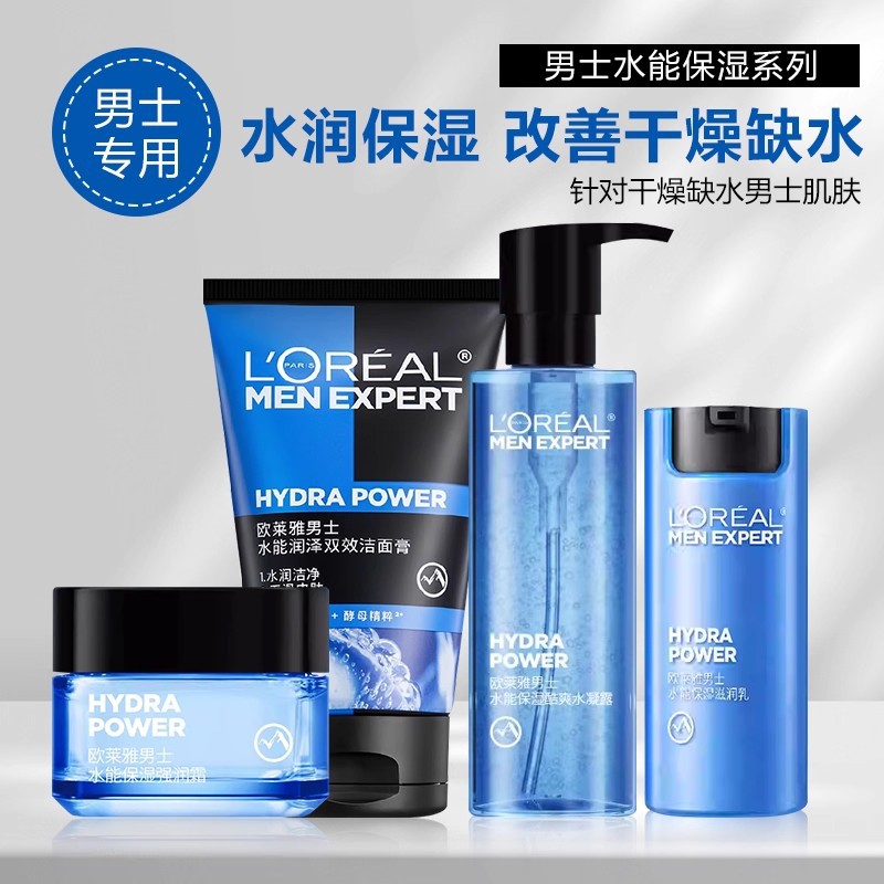 欧莱雅男士套装水能保湿洗面奶水凝露滋润乳护肤品洁面乳高保湿