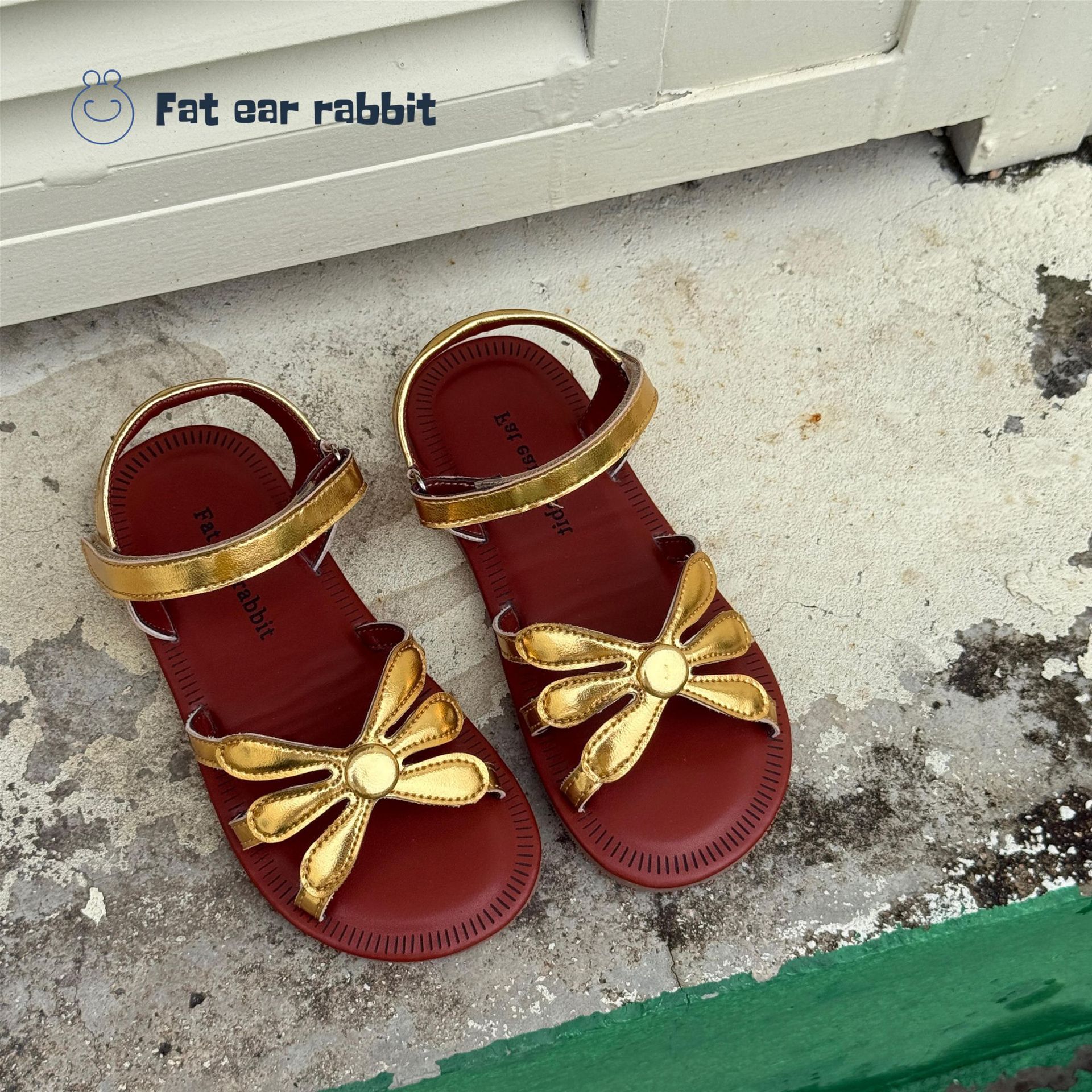 韓国スタイルの女の子のサンダルゴールデンフラワーオープントゥプリンセスビーチシューズソフトソール快適な女の子の滑り止めローマ織り