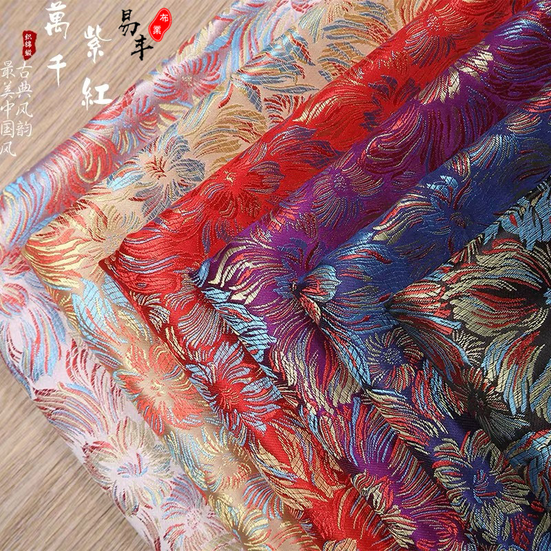 直売彩菊万紫千紅織錦織生地中国風服装ジャカード生地模造古チャイナドレスシルク生地