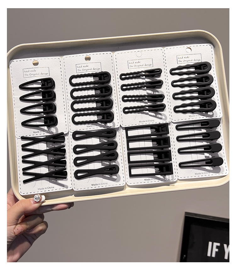 洋風シンプルなサイドクリップ焼き塗料ヘアクリップ黒砕髪一字クリップ盤旅行高速鉄道質感高級スチールクリップ