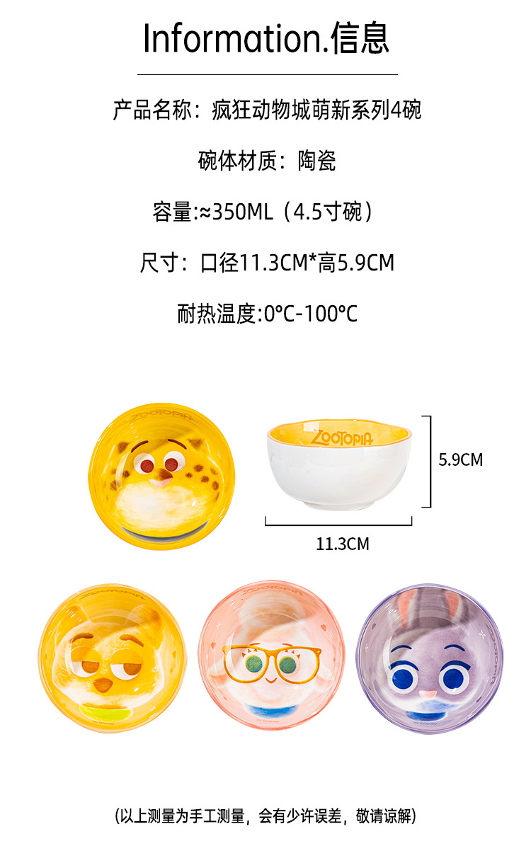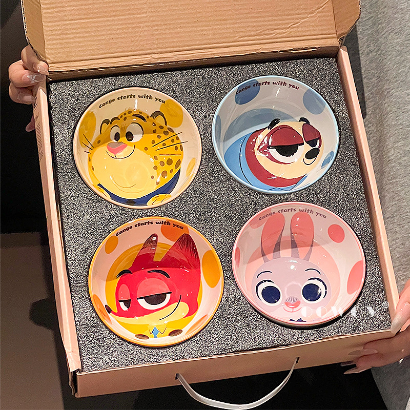 疯狂动物城尼克陶瓷饭碗釉下彩卡通陶瓷碗套装送礼伴手礼生日礼物