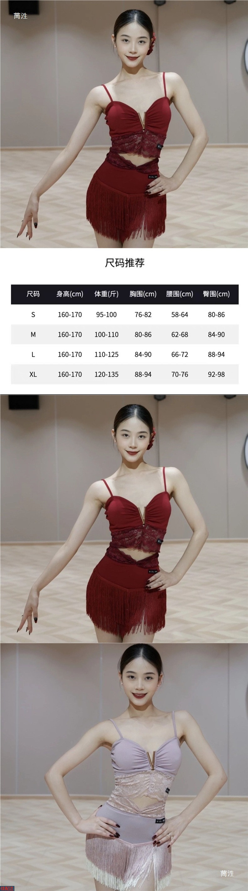 颜色 皮粉上衣(带胸垫),皮粉V流苏裙(带底裤),酒红色吊带上衣(带胸垫),酒红色V流苏裙(带底裤),皮粉套装(吊带+半裙+袜套),酒红色套装(吊带+半裙+袜套)
