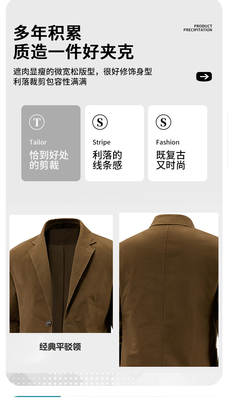 纯棉西装外套男商务休闲单西修身西服夹克中年爸爸装春秋外套