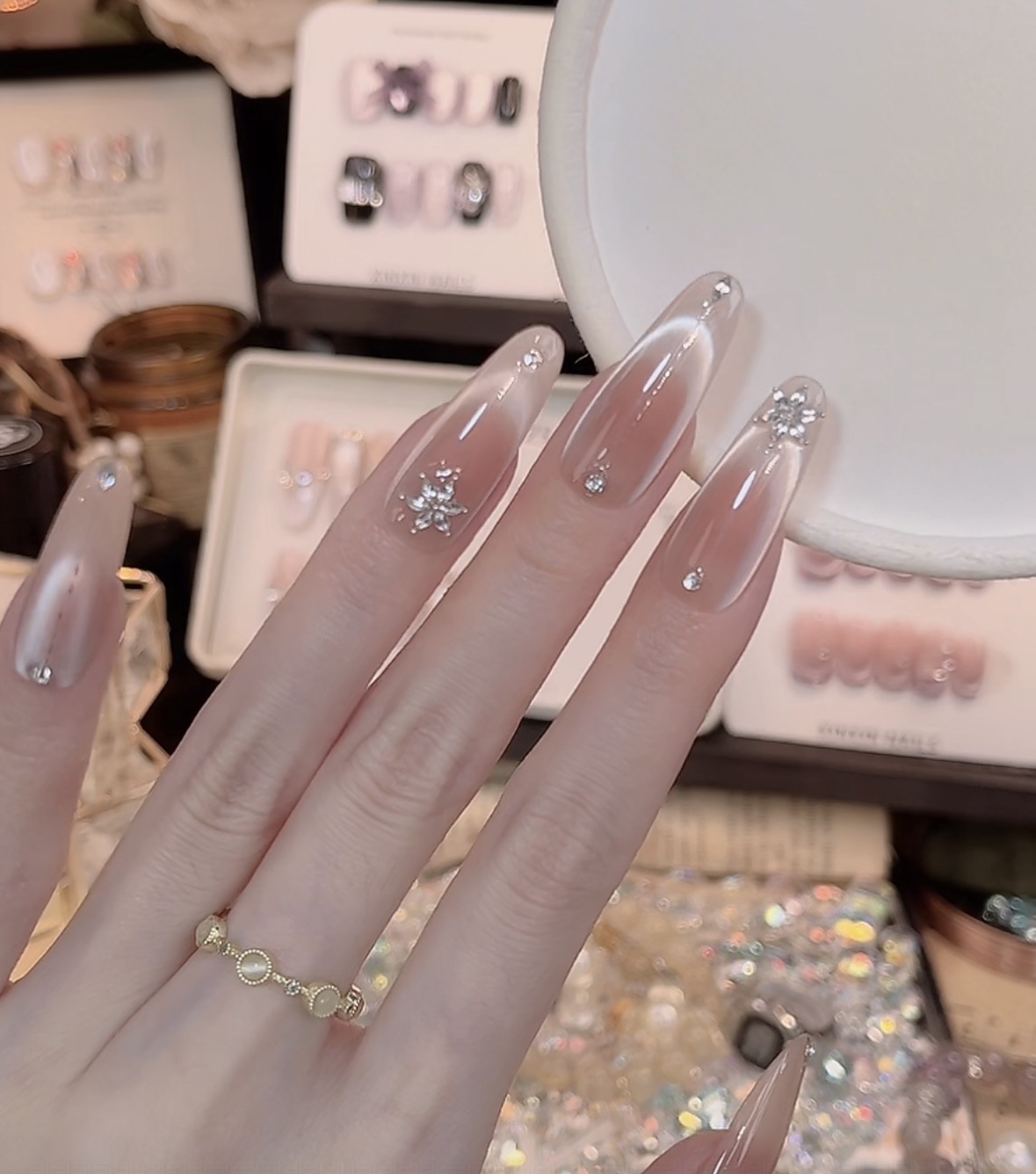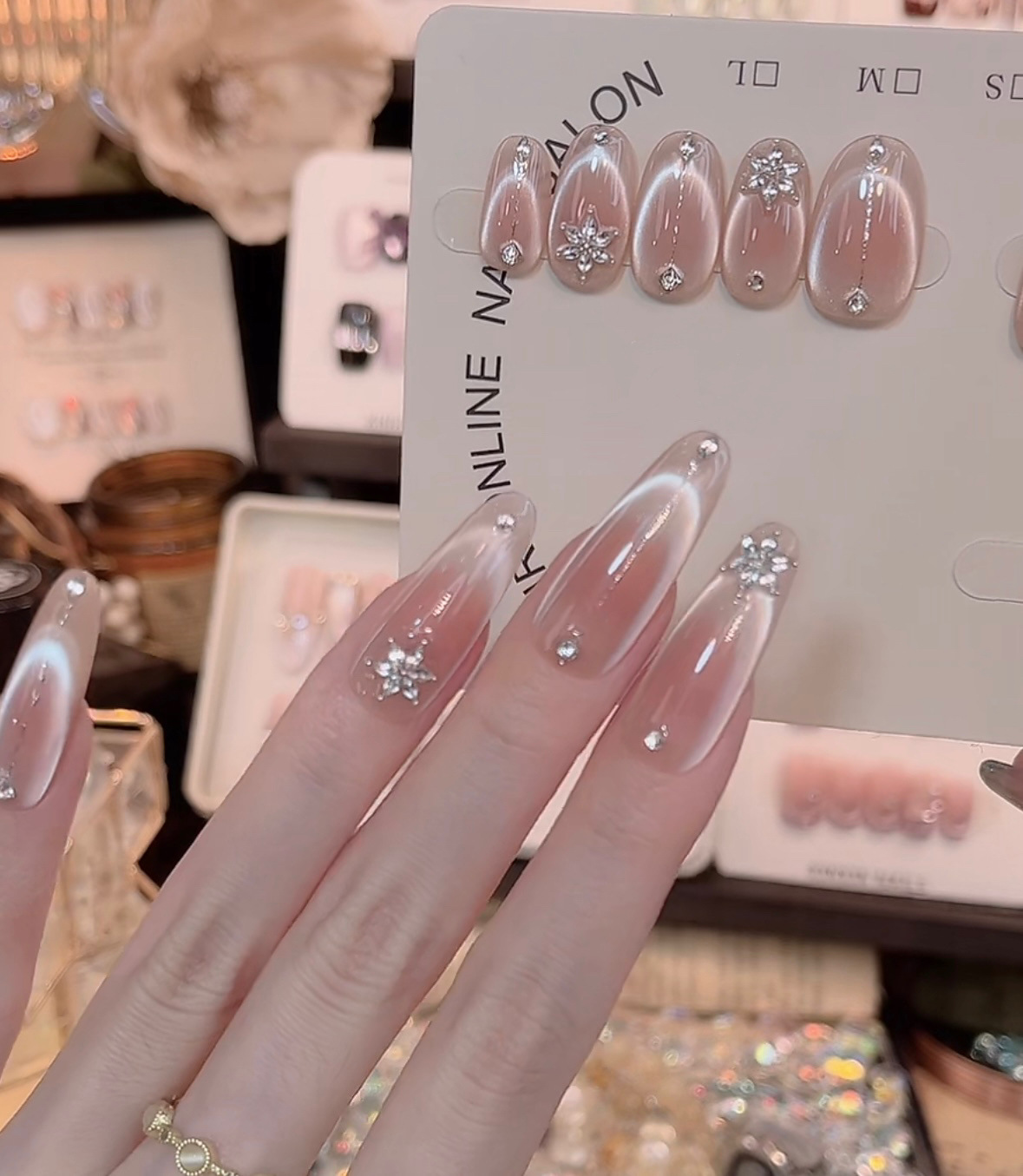 【明镜台】纯手工穿戴甲纯欲猫眼雪花锆石爆闪高级纯手作美甲10片