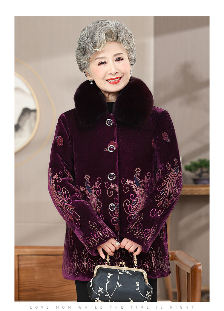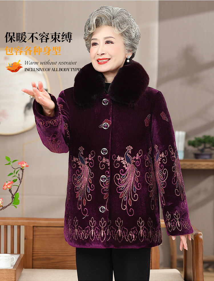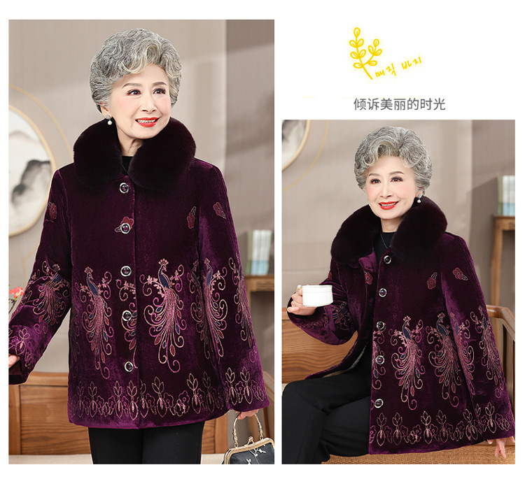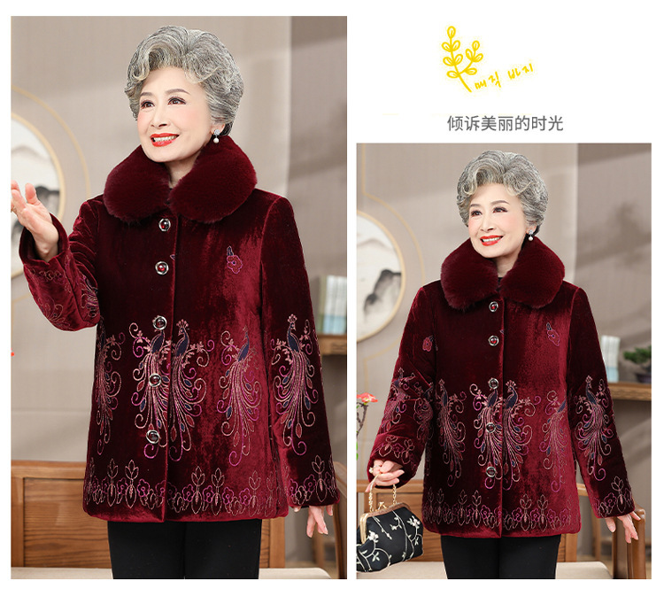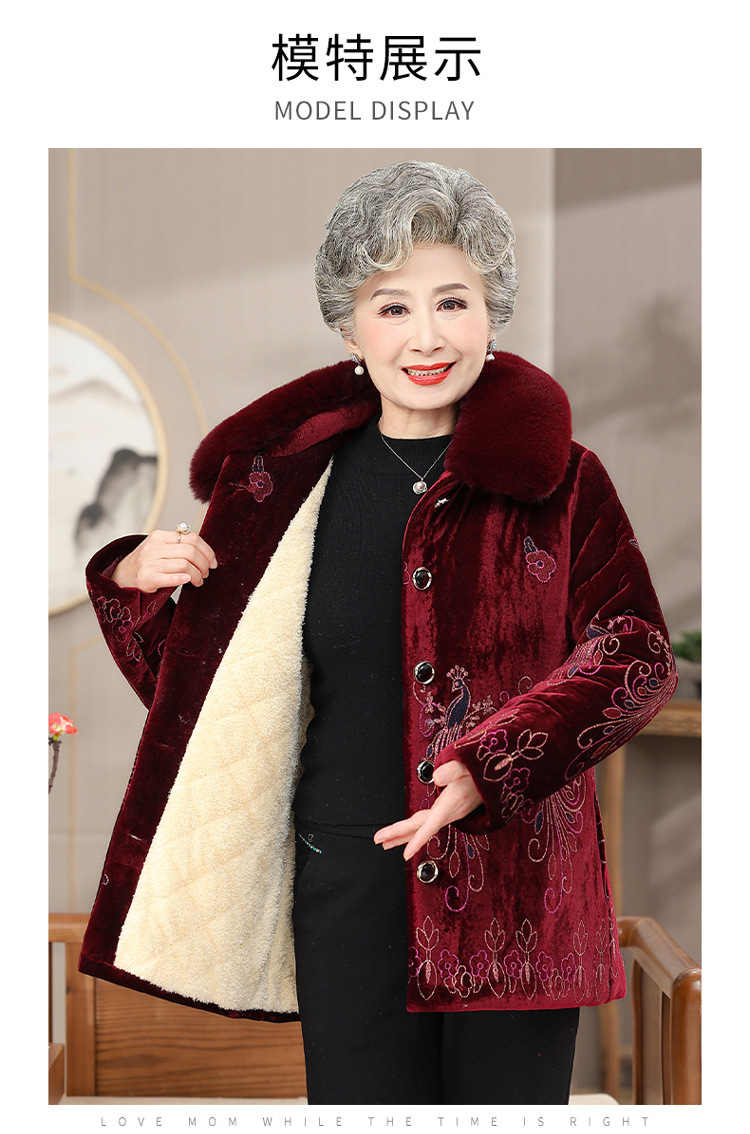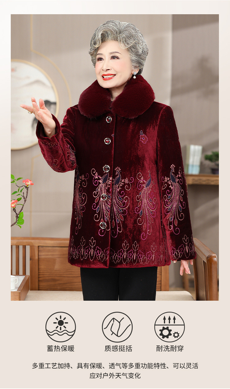 中高年向けの新しい冬服、ベルベットと厚手の綿の服、ベルベットの女性のファッショナブルな母親の服、綿のジャケット、洗濯不要のジャケットトップス