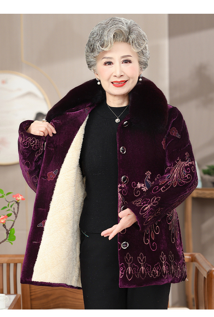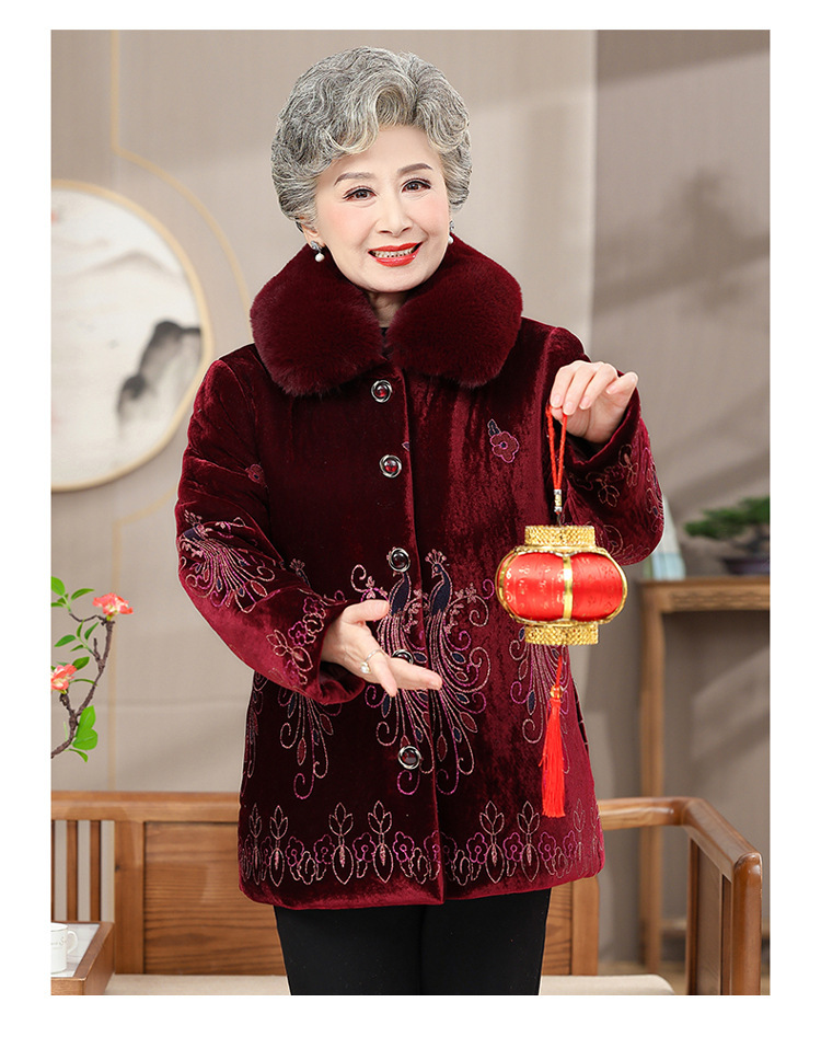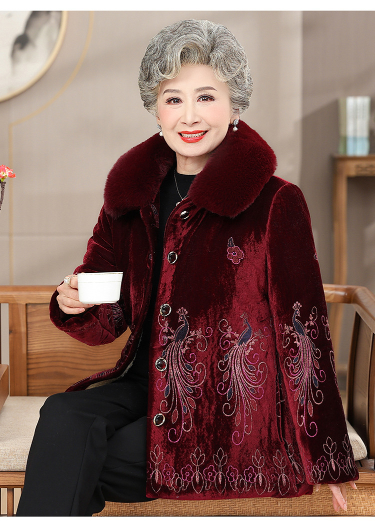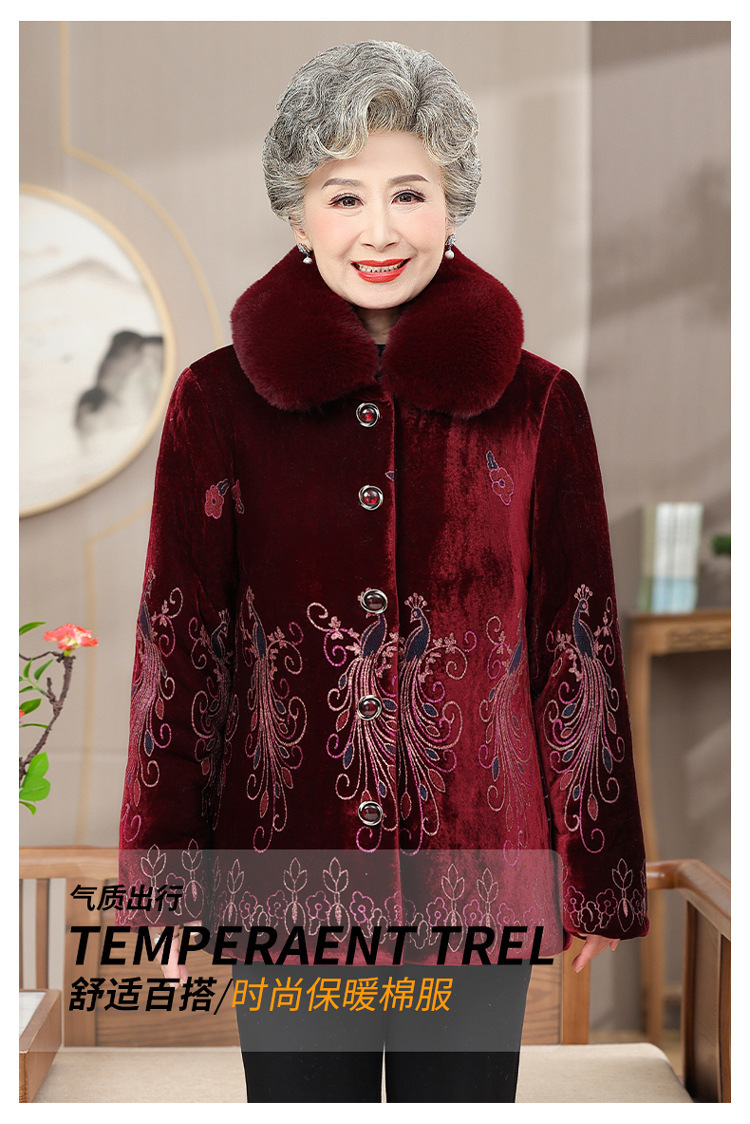 母親の冬用綿入りジャケット、高齢者用ベルベット厚手のスタンドカラー、おばあちゃんの綿入りジャケット、70歳と80歳の女性用コート、女性用綿入りジャケット