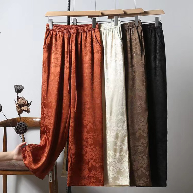 春と秋の新作香雲ガーゼ中国風ハイウエストワイドレッグパンツカジュアルジャカードスカートパンツマルベリーシルクサテン痩身新しい中国風の女性