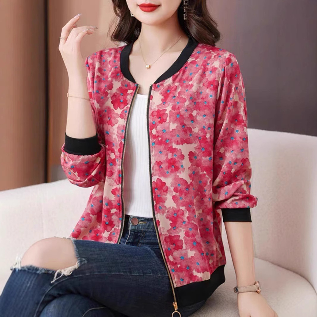 新しいママの薄手のコートジャケット長袖ジッパーシャツ日焼け止め服春、夏、秋の中高年ジッパーシャツトップ