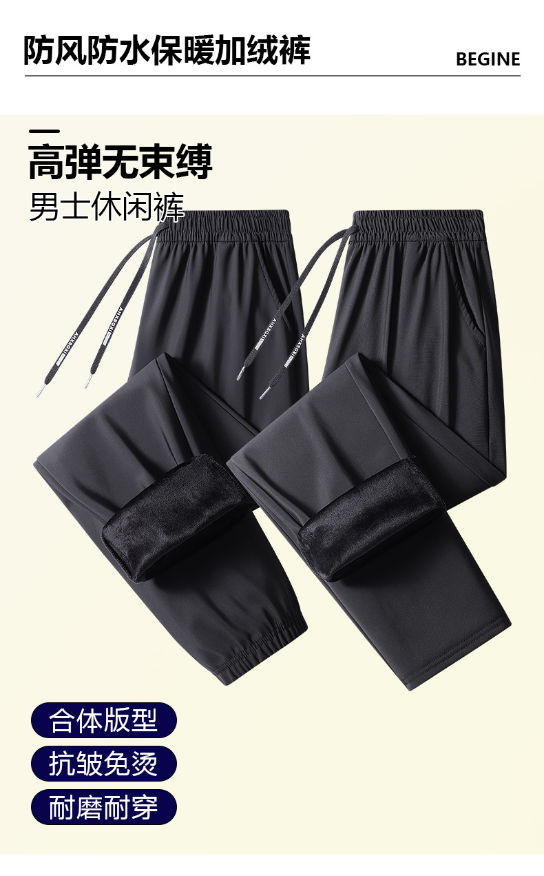 男士防寒保暖大码弹力休闲裤六防防泼水防污渍冬季加绒加厚防风裤