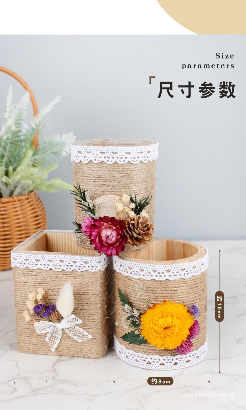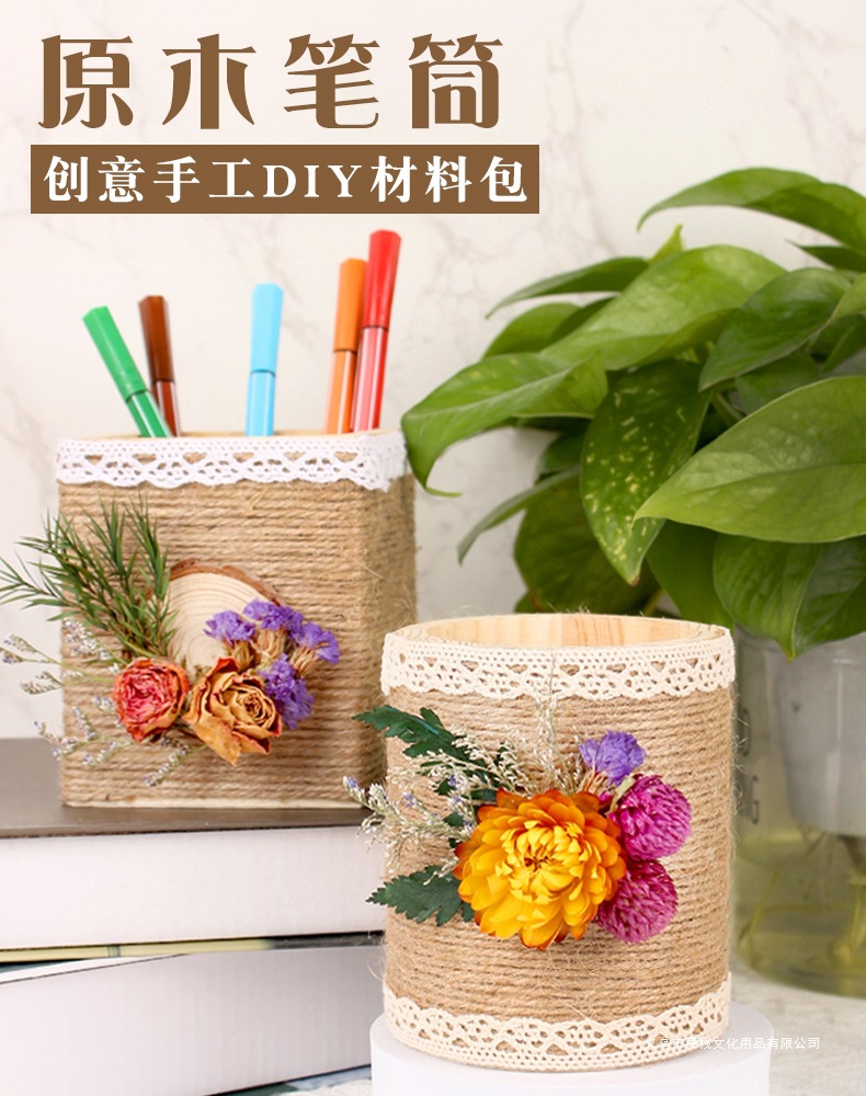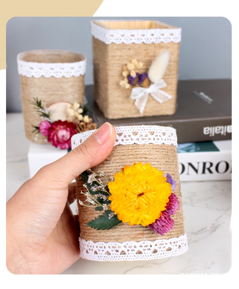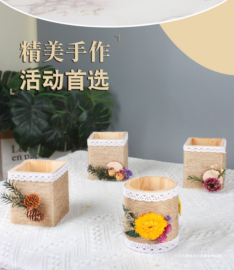 教师节手工diy礼物笔筒制作材料麻绳花小学生自制毕业作品送老师
