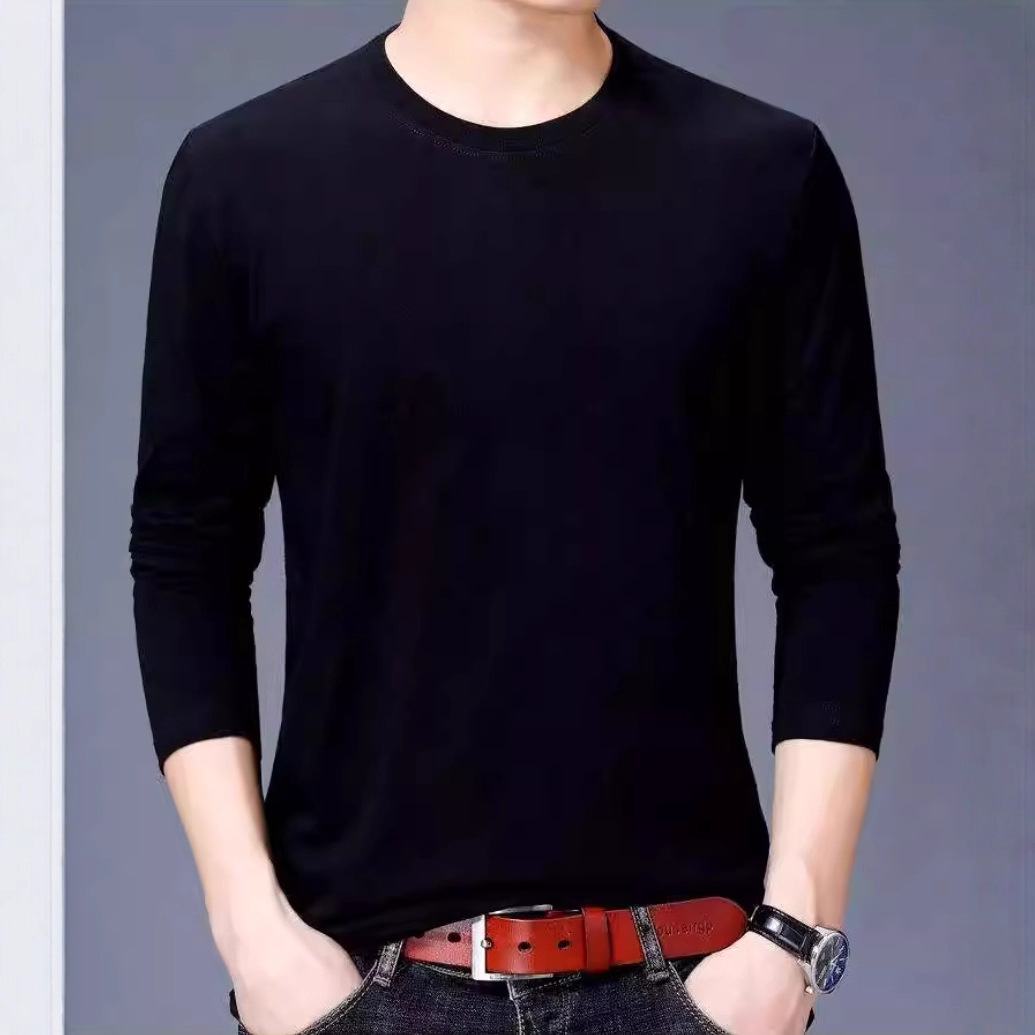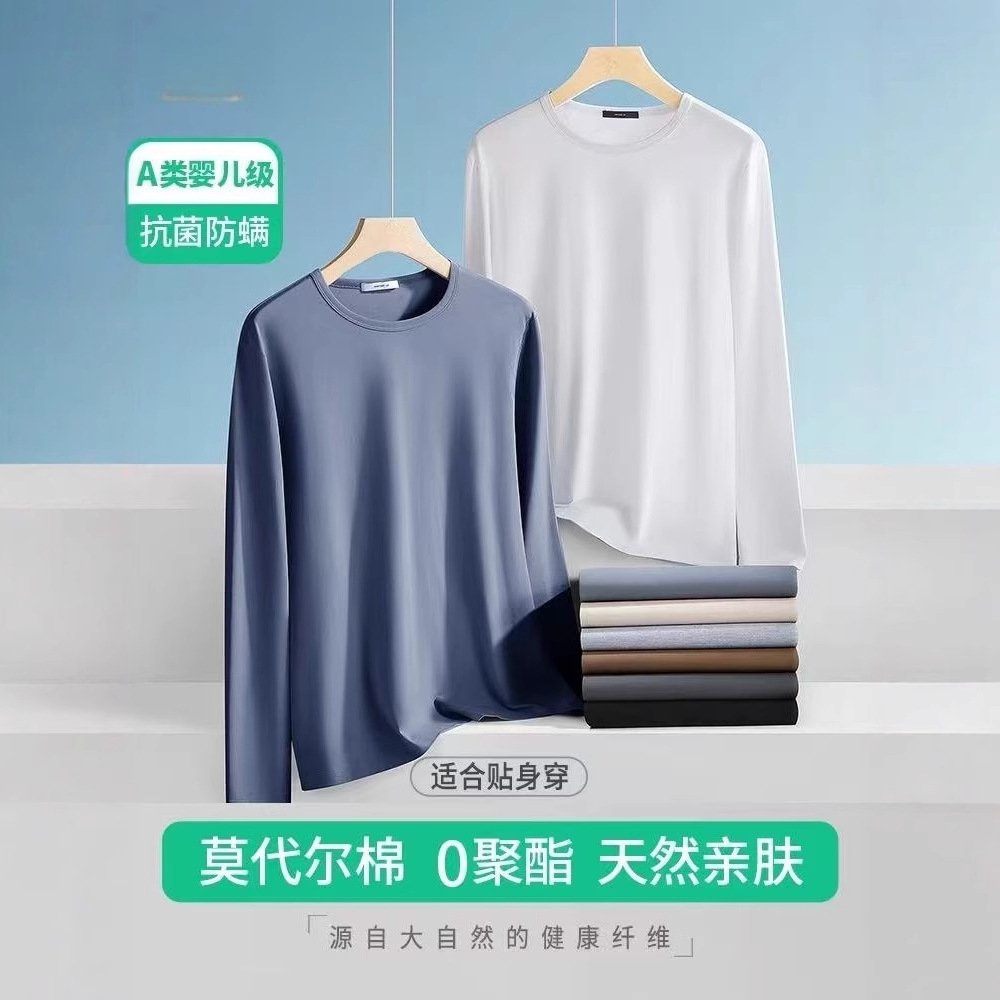 新款春秋圆领长袖T恤男士上衣薄款打底衫内衣内搭外穿修身百搭