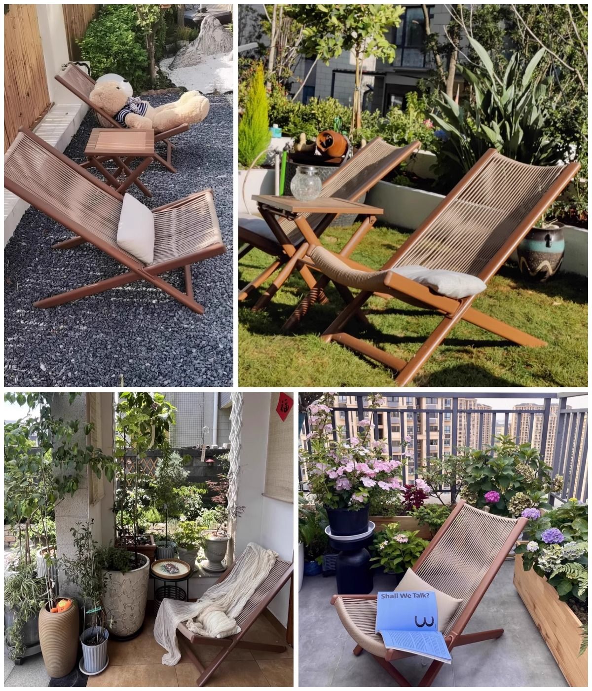 花园躺椅阳台家用休闲晒太阳两用折叠靠背藤椅子户外庭院桌椅防水