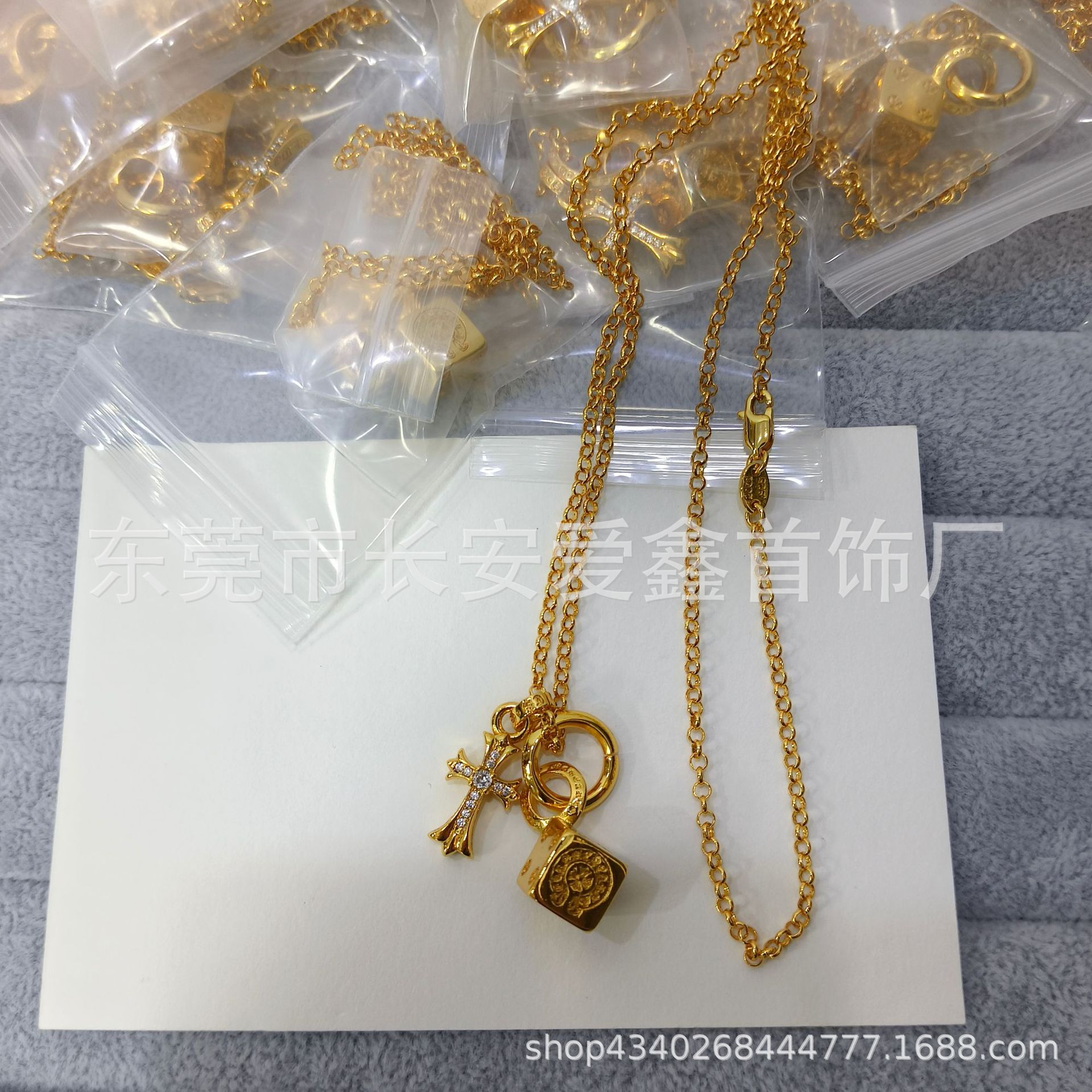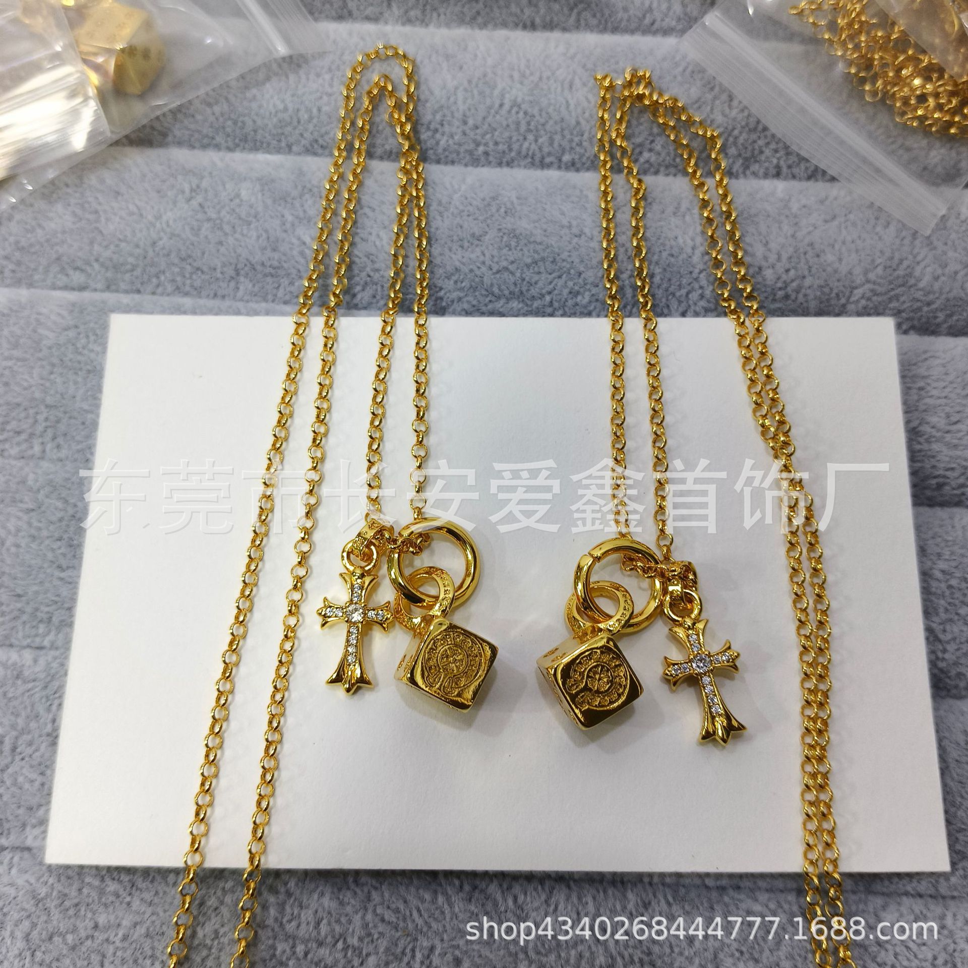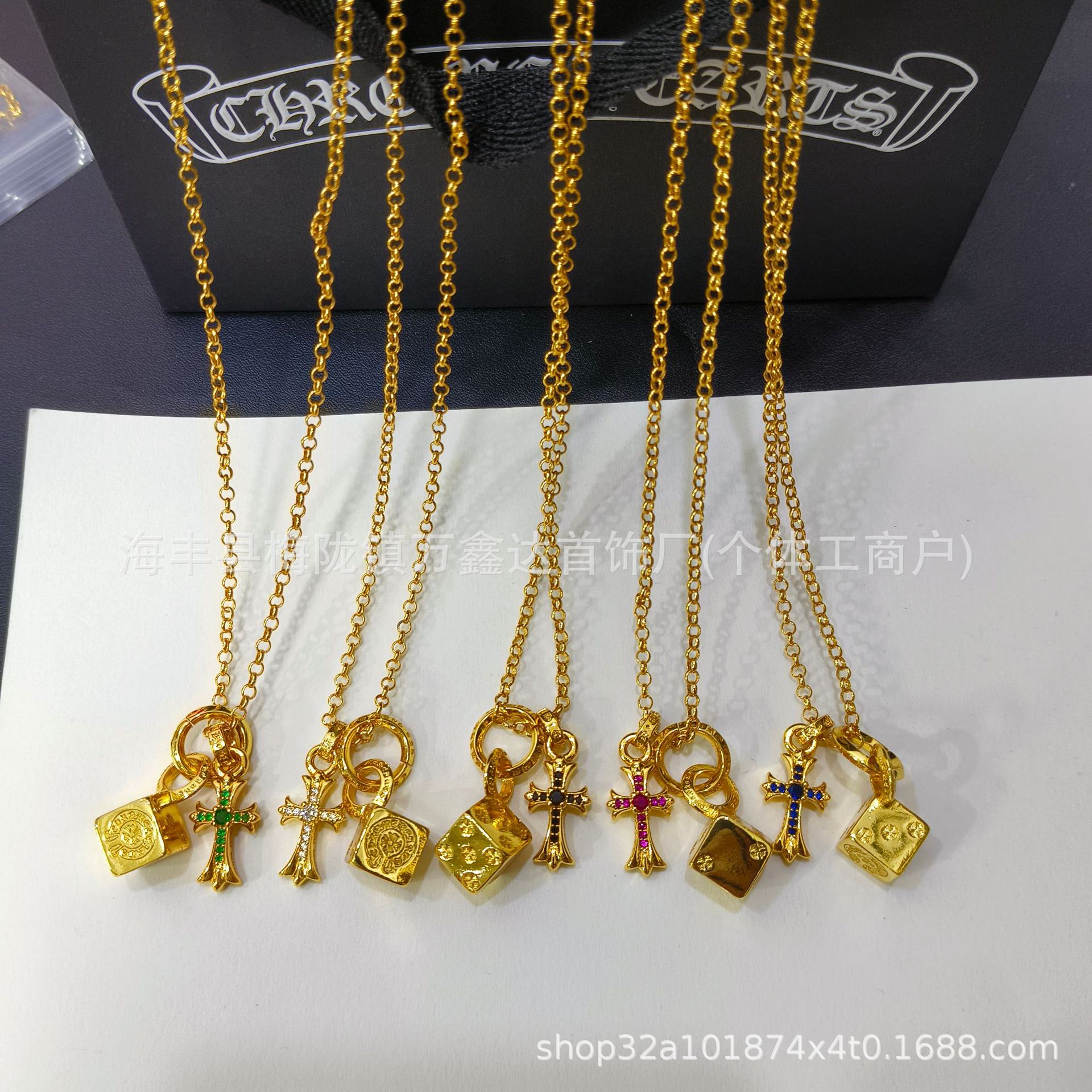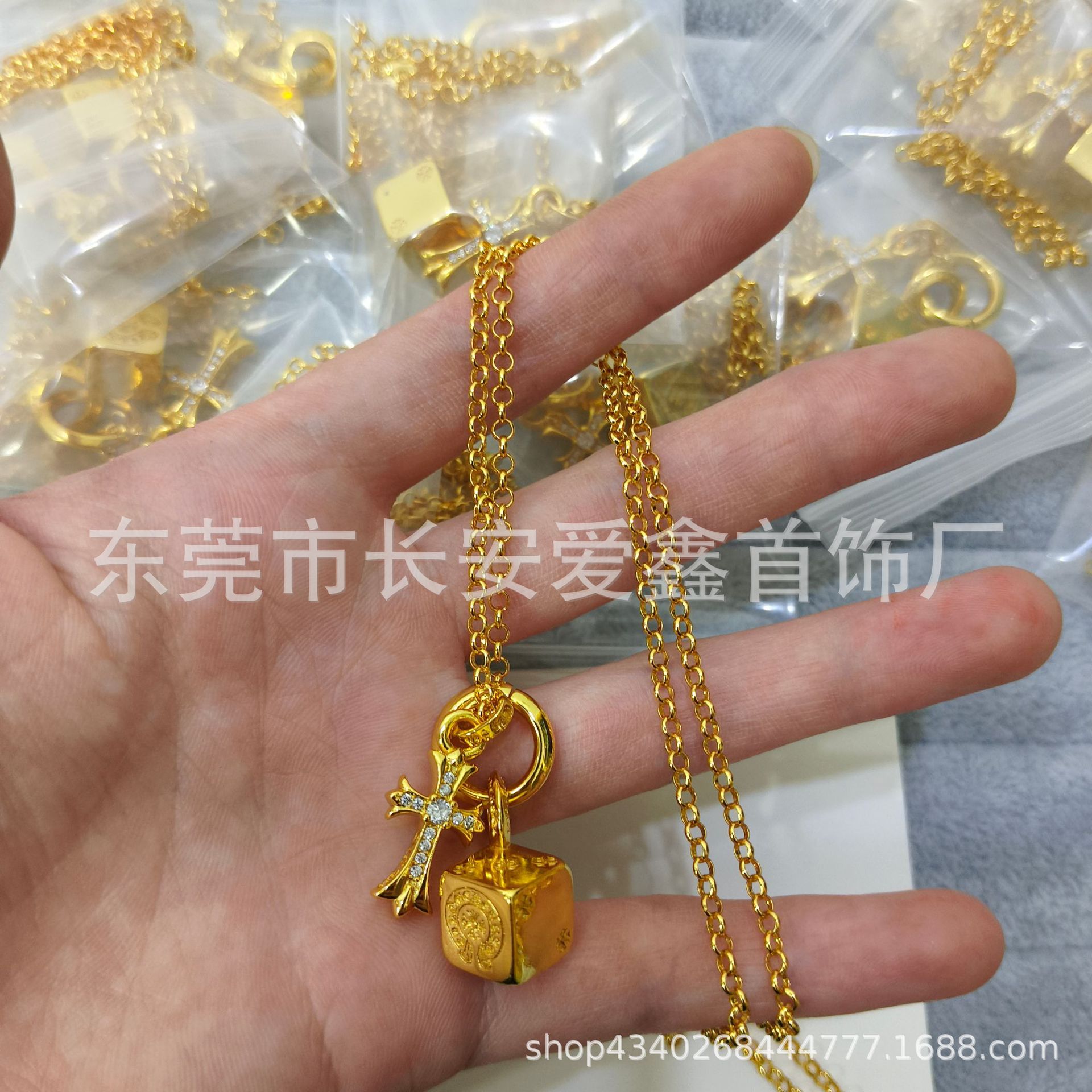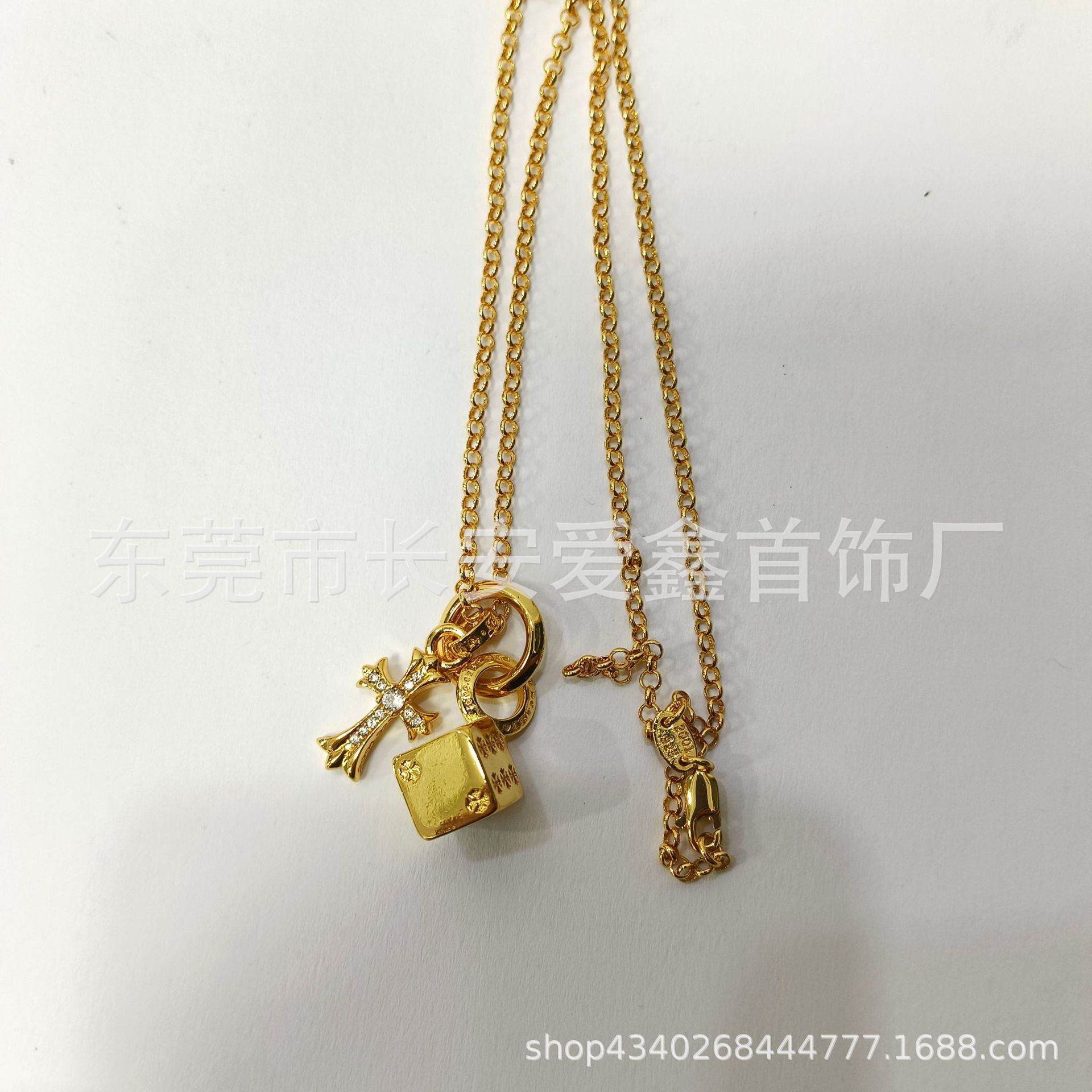 颜色 金色十字架骰子珍珠链