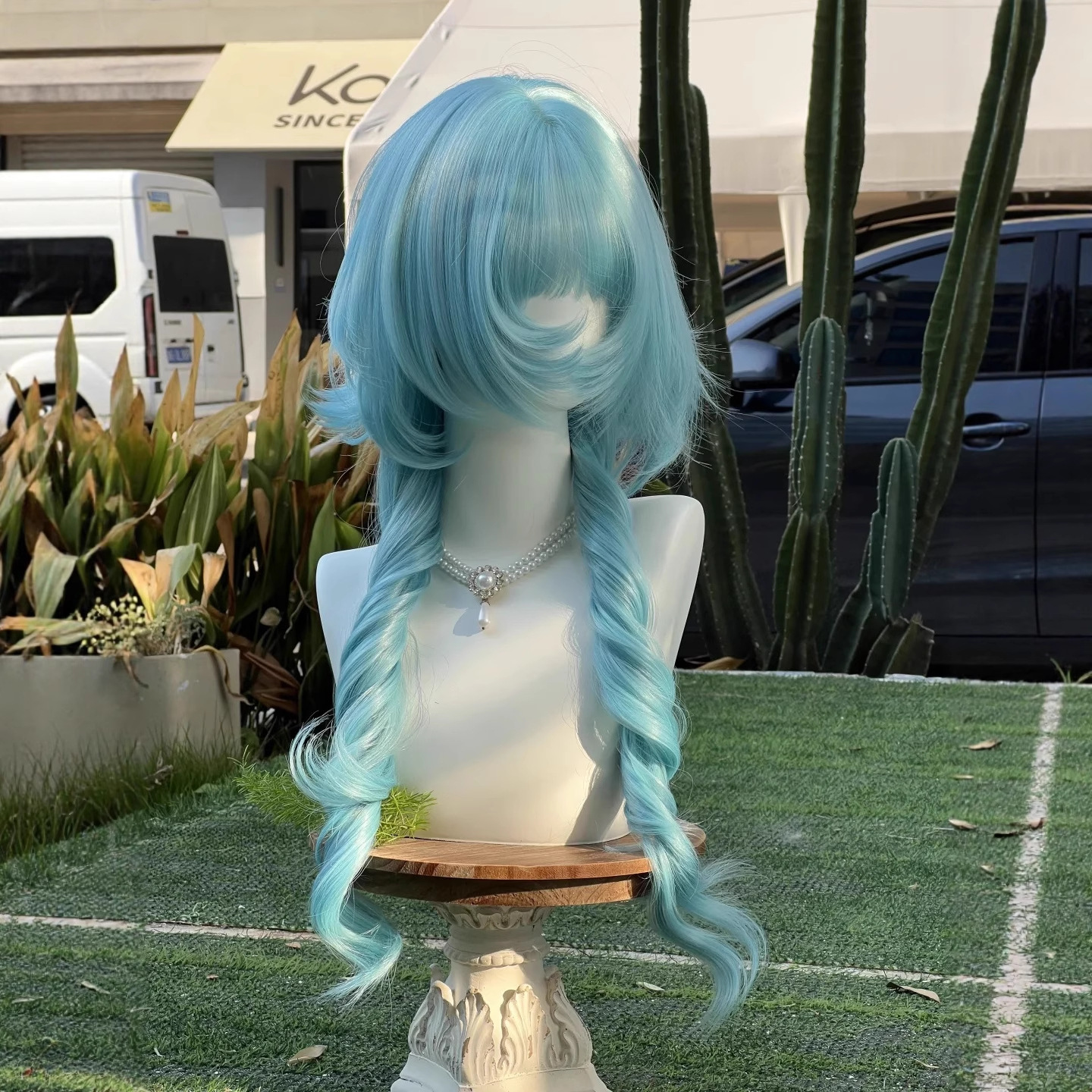 假发女齐刘海水母头湖蓝色长卷发lolita氛围感仿真发自然全头套式