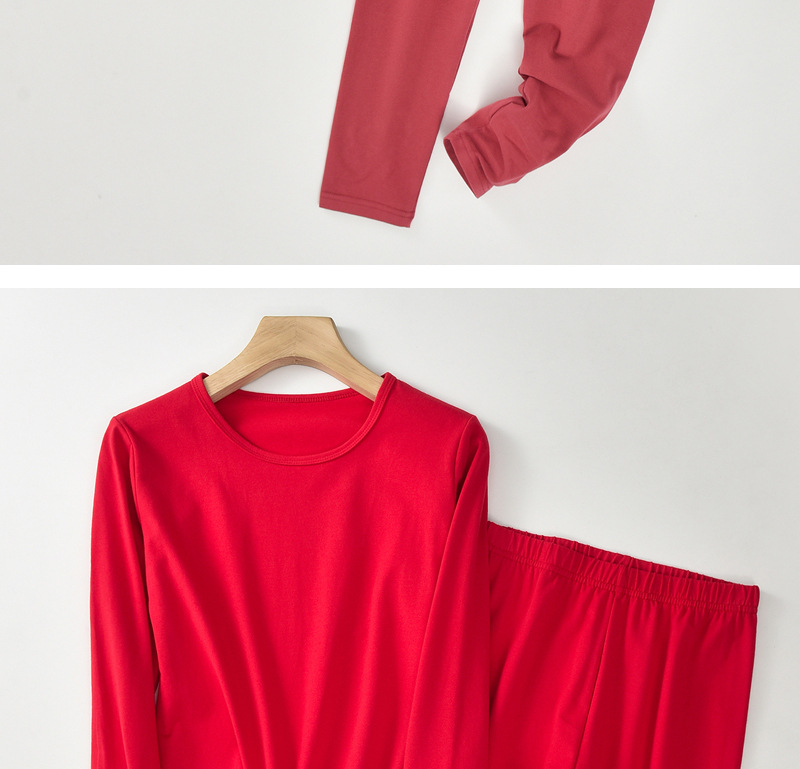 赤い300斤の特大サイズの加肥大版保温下着セットの女性本命年徳パイルは高齢者を厚くする