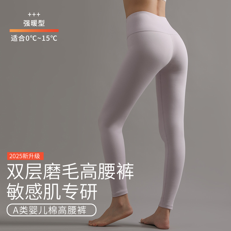 A类棉女士加绒加厚高腰秋裤双面磨毛10A抗菌纯绵修身大码打底裤
