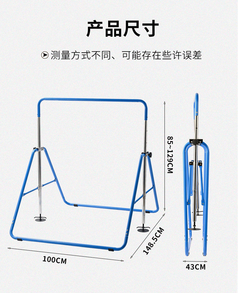 跨境儿童体操单杠 可4档调节室内外竞技训练体操单杠源头工厂批发