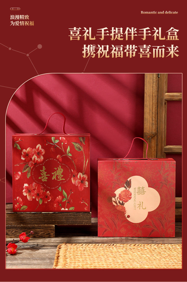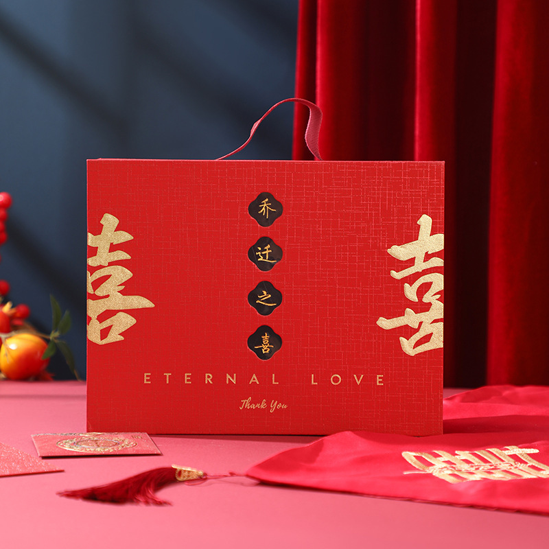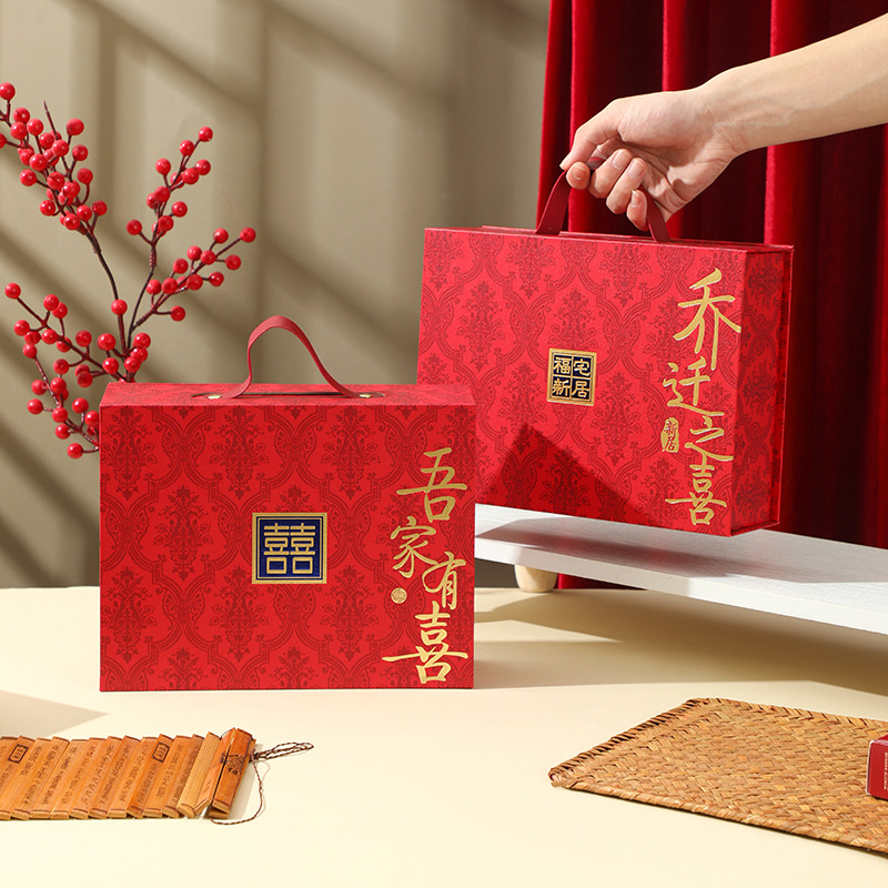 现货新中式伴手礼礼盒乔迁之喜结婚订婚宾客回礼复古高档红色礼盒