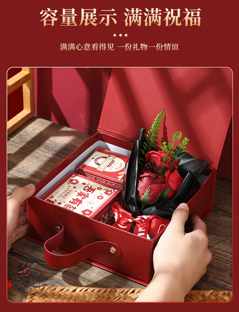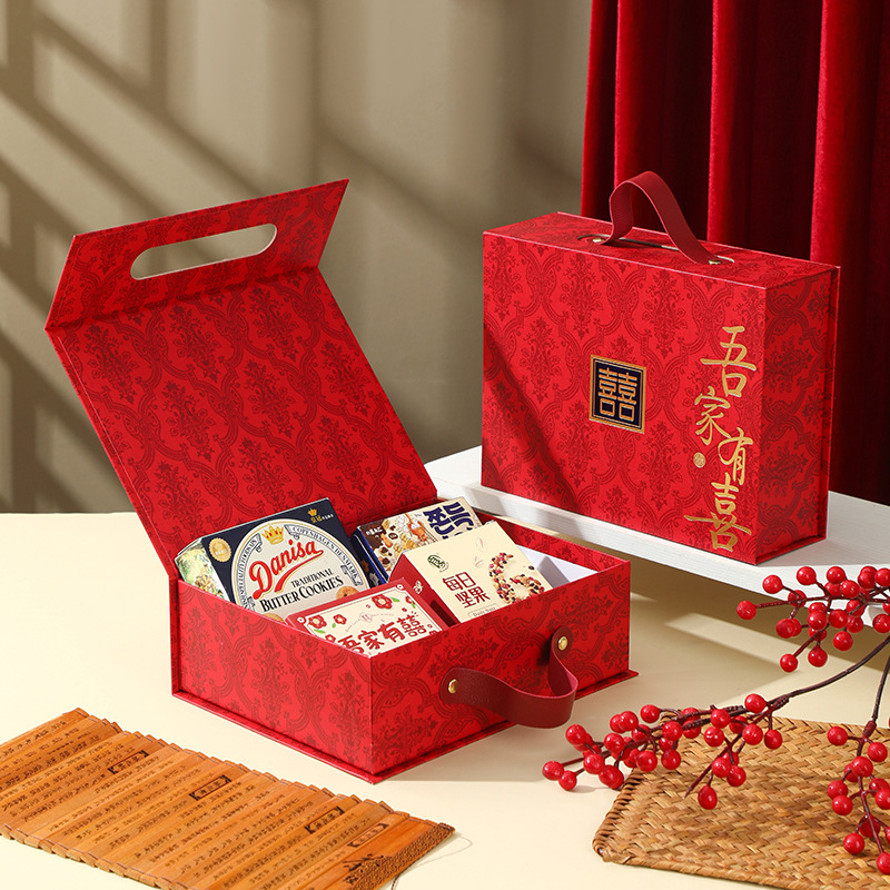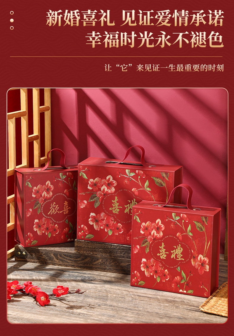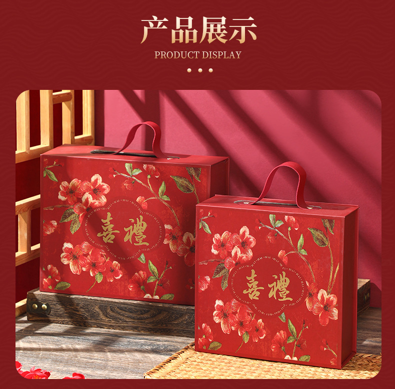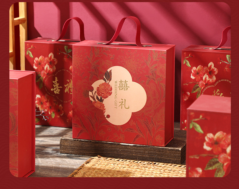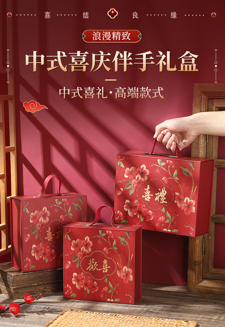 现货中式结婚订婚伴手礼盒磁吸翻盖手提礼品盒国风喜庆礼盒子空盒