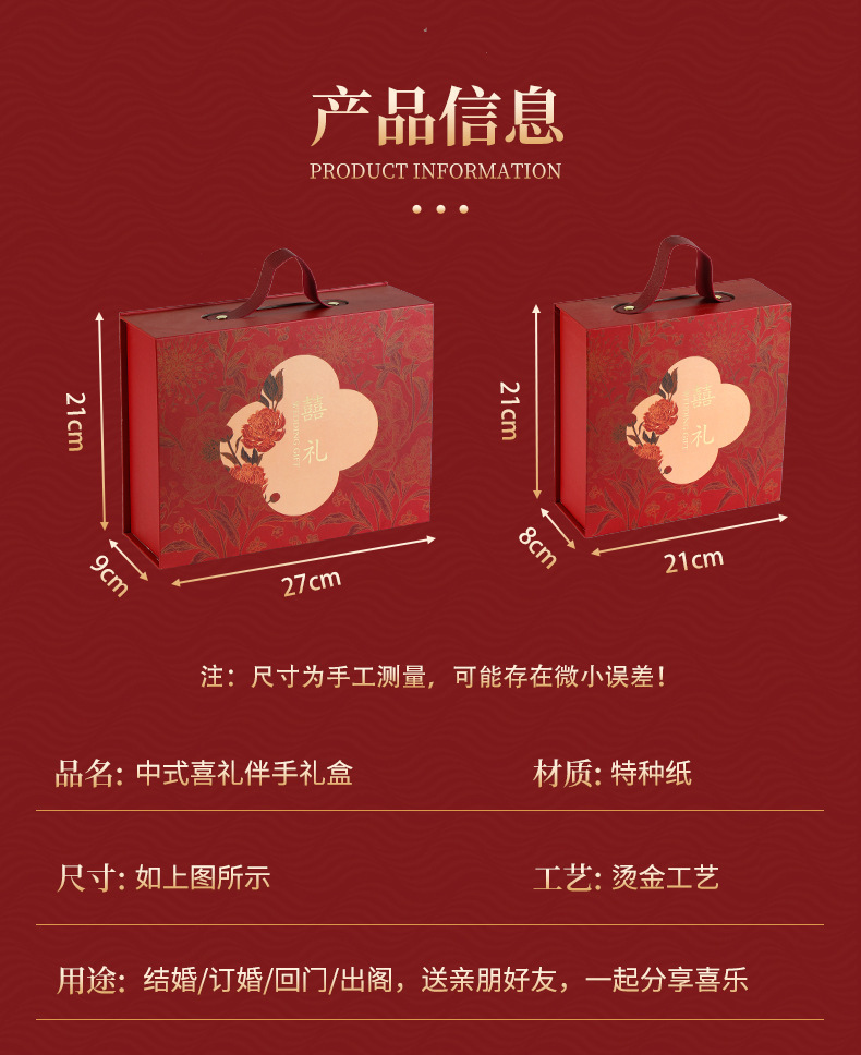 规格型号 T-007喜礼;大号:27*21*9cm,T-007喜礼;中号:21*21*8cm