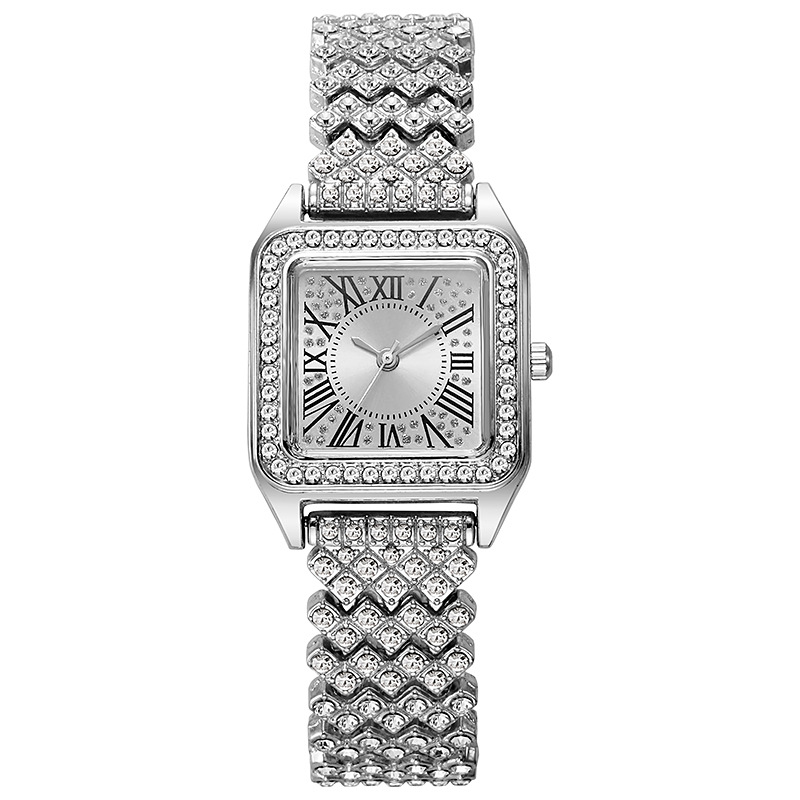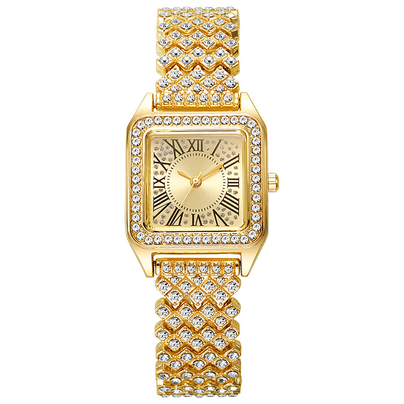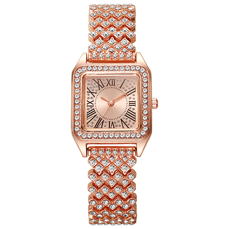 外贸跨境爆款时尚罗马文满钻方形女士手表罗马刻度石英表厂家批发