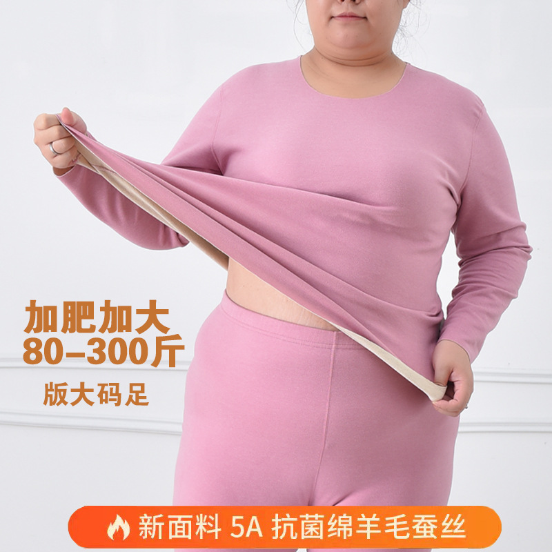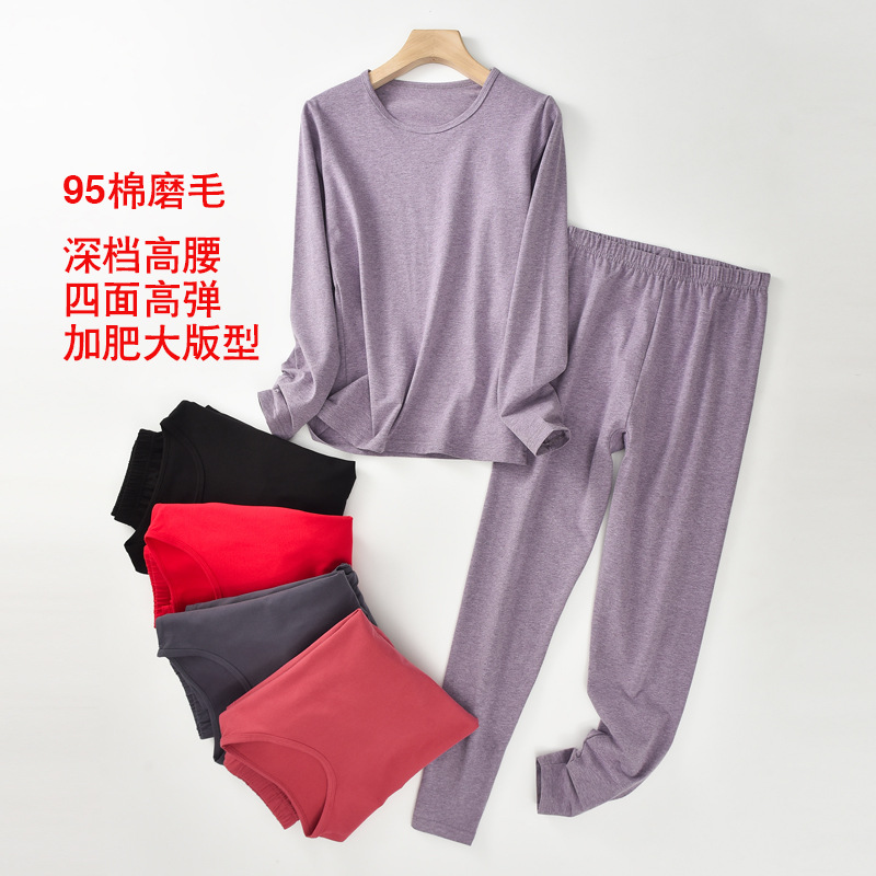 80-280斤95莱卡棉磨毛秋衣秋裤套装高弹深档高腰加肥加大版型女冬