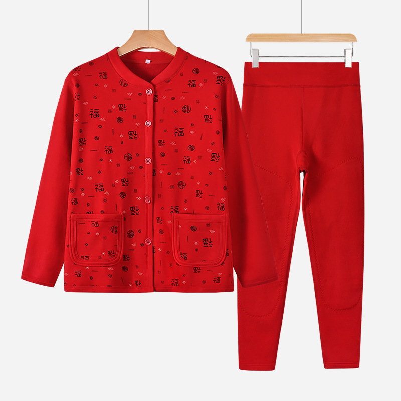 女士本命年保暖套装中老年人妈妈开衫款式大码加绒加厚内衣秋冬