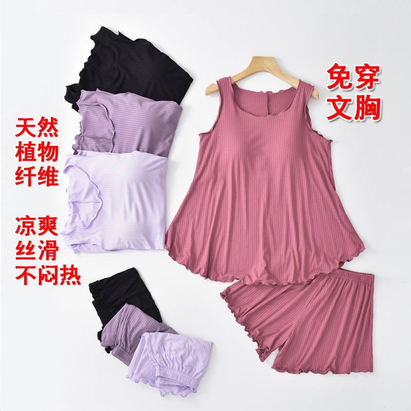 人の綿は太って大きいサイズをプラスして胸のパッドのベストのスカートのショートパンツのスーツの女性のパジャマの夏の太ったmmのゆったりしている外は家の服を着ます