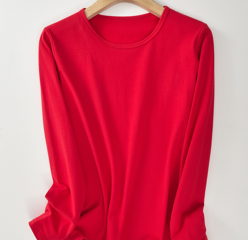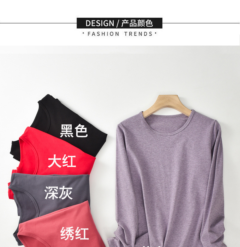 加肥加大版80-280斤女圆领秋衣95莱卡棉磨毛高弹长袖保暖上衣单件