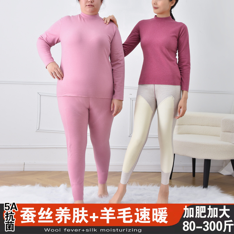プラスサイズ、ハーフタートルネック、保温下着セット、シルクウール、大きいサイズ、40-150kg、女性用、中襟、秋服、秋ズボン