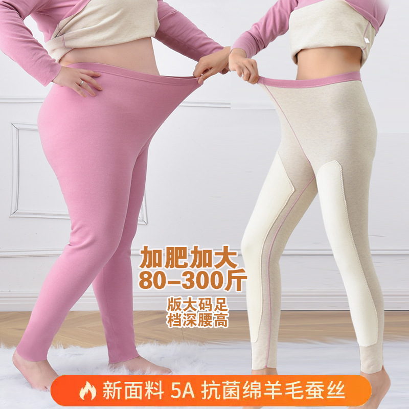 太った女性向けの大きいサイズ 150kg シルクウール保温レギンス 女性用インナーウェア 秋冬用スリムハイウエスト保温パンツ