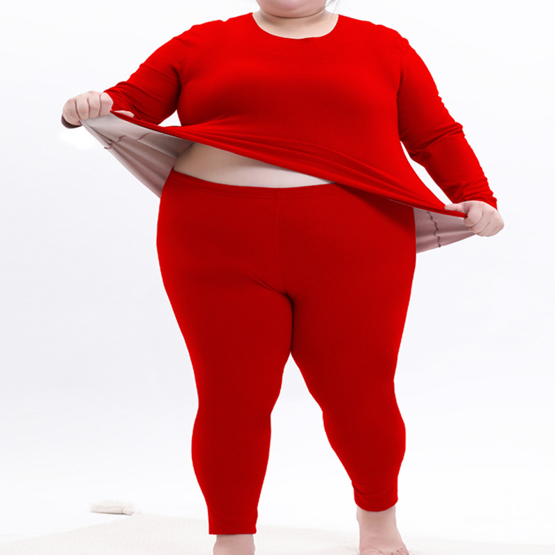 赤い300斤の特大サイズの加肥大版保温下着セットの女性本命年徳パイルは高齢者を厚くする