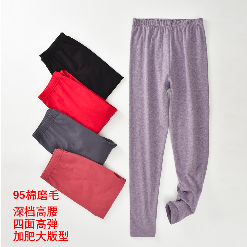 80-290斤加肥大版秋裤女95棉磨毛深档高腰高弹保暖莱卡线裤单件冬