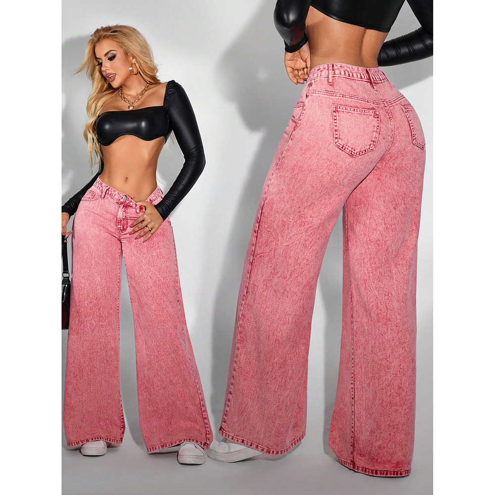 TEMU欧米のクロスボーダーの新型レトロなアメリカのロングタイプのギャルのゆったりしたジーンズの女性のハイウエストのストレートズボン