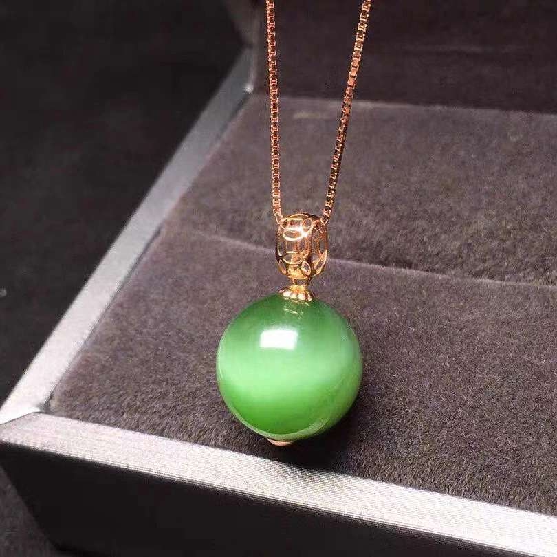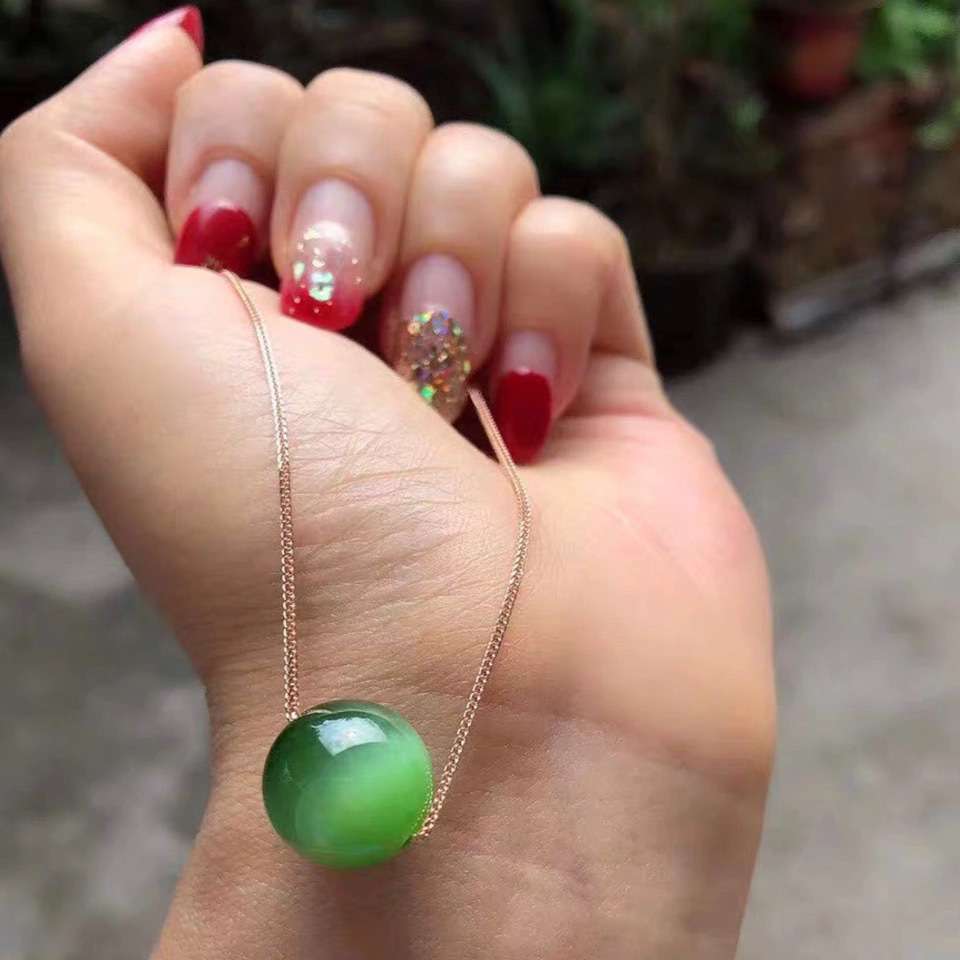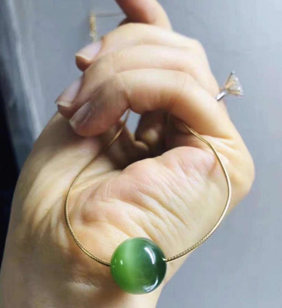 和田玉碧玉阳绿猫眼散珠单颗圆珠手链多宝手串配珠锁骨坠