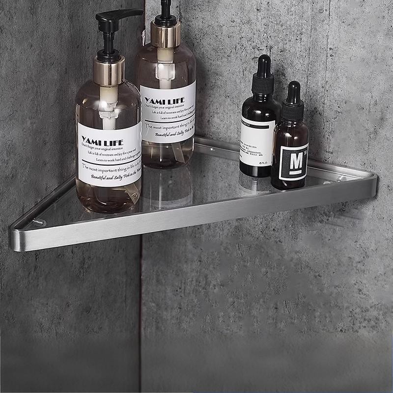 浴室三角玻璃置物架打孔304不锈钢卫生间淋浴房转角洗漱收纳架