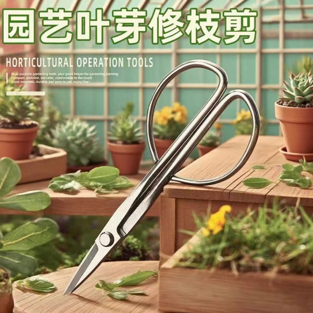 加厚叶芽剪刀全不锈钢园艺剪嫩芽修枝小枝切剪盆景长杆叶片剪刀