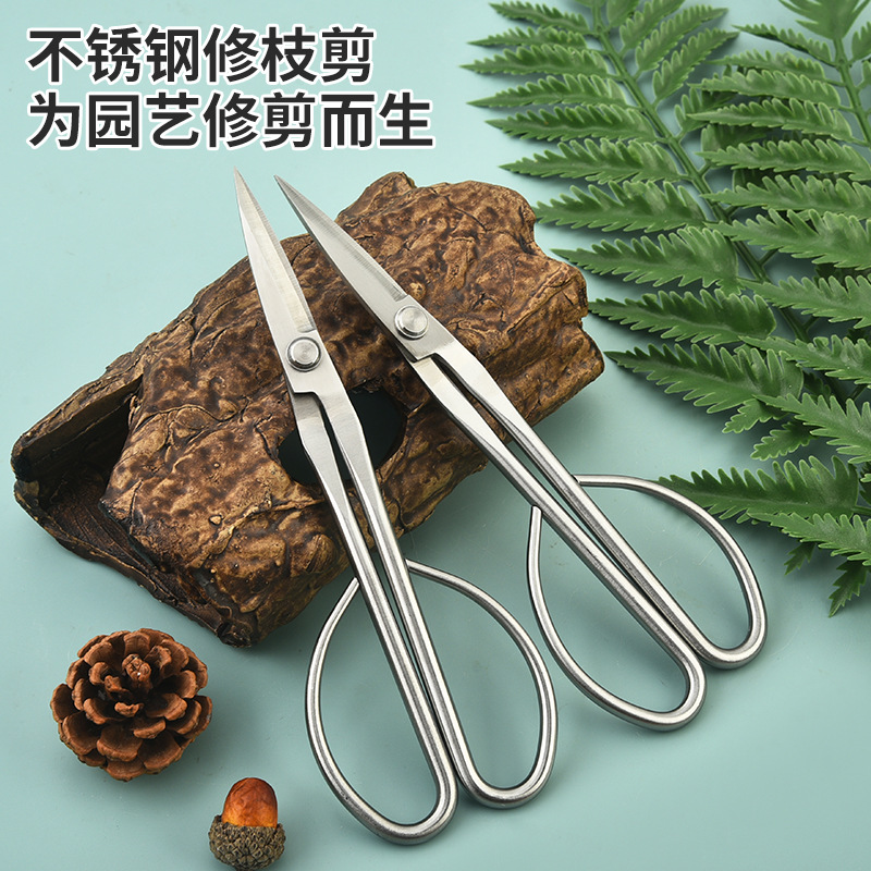 树枝修剪剪刀加厚不锈钢盆栽嫩芽修剪园艺剪枝叶盆景长柄剪刀