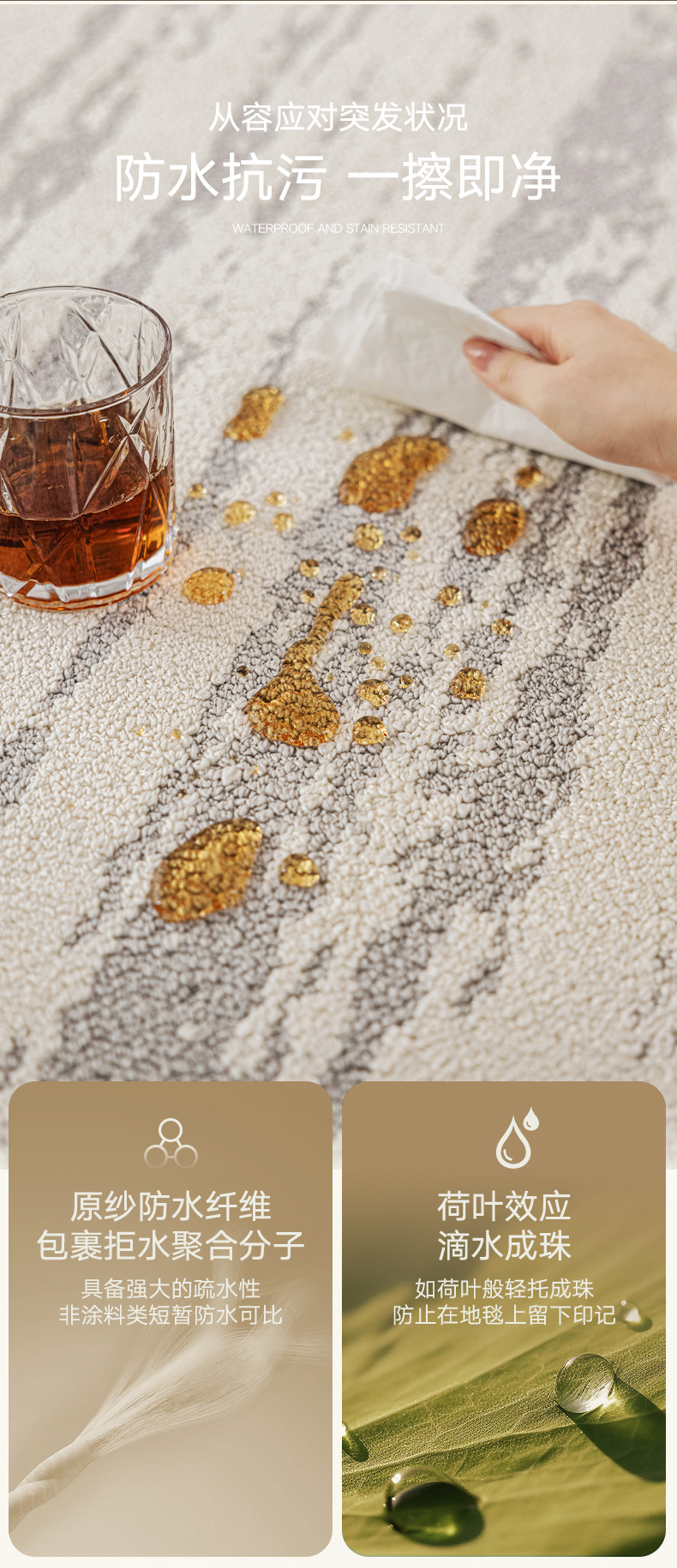 奶油风客厅免洗地毯沙发垫易打理可擦地垫卧室轻奢防水舒适脚垫