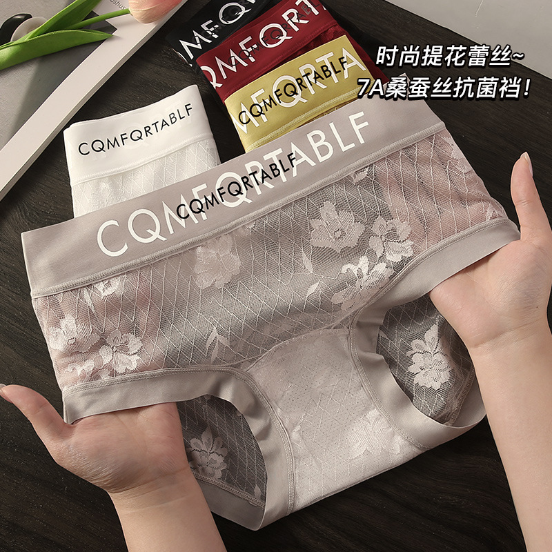 フレンチレースガールズ下着 7A 抗菌マルベリーシルクシームレス通気性快適なミッドウエスト女性のブリーフセクシー