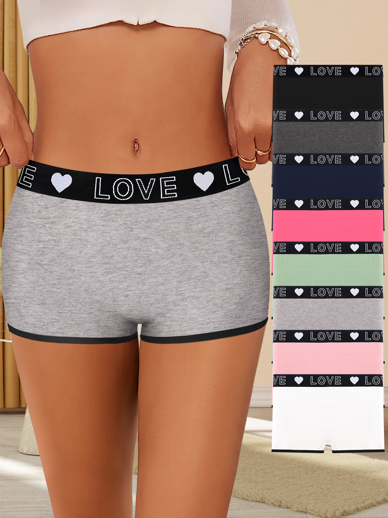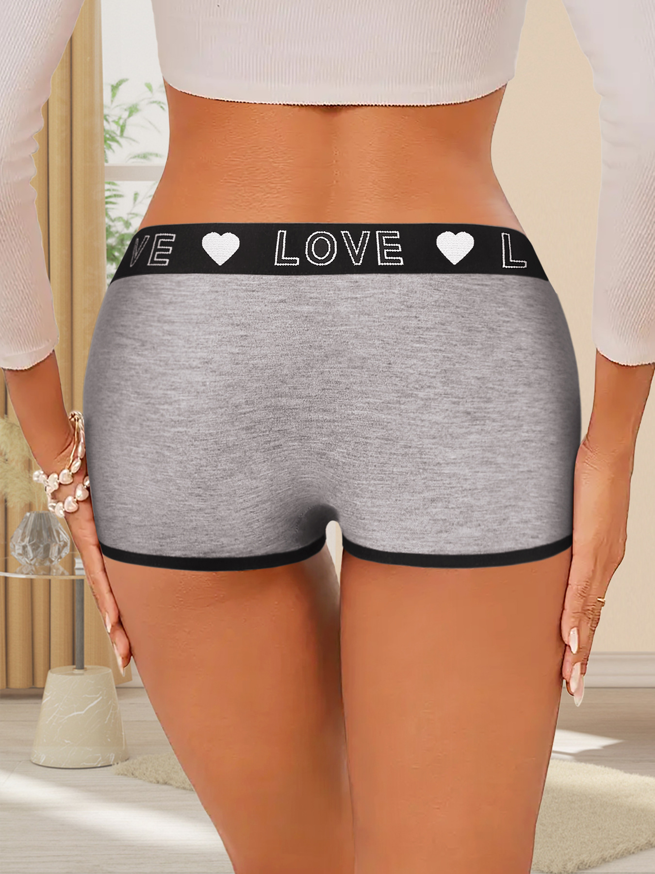 クロスボーダーTEMUアマゾンハイウエスト欧米スポーツショートパンツアルファベットLOVEニットファッションカジュアルレディースボクサーパンツ