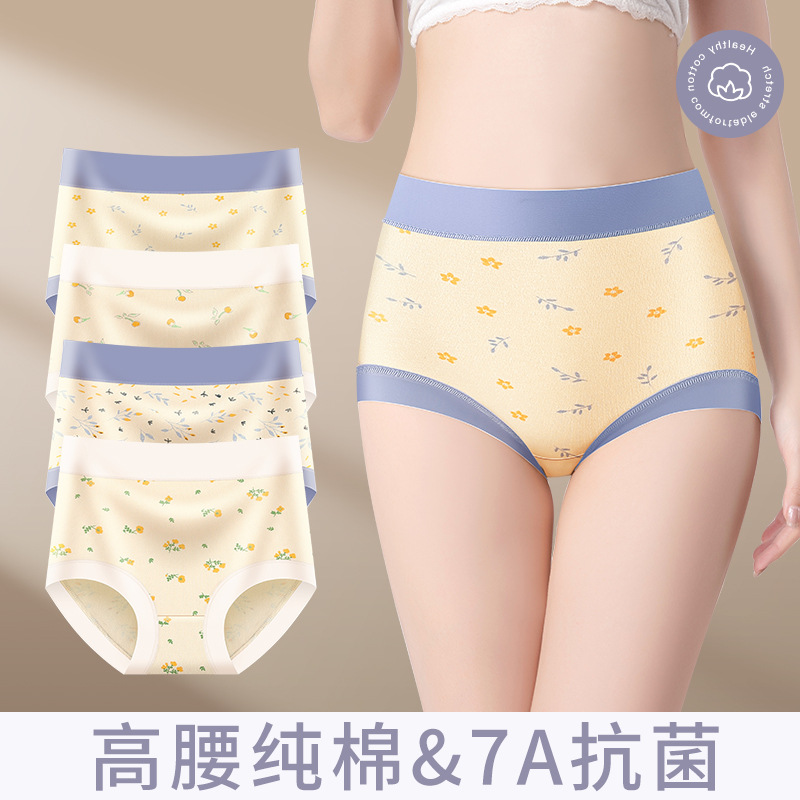 女の子の純綿ハイウエスト下着女性の大きいサイズ 7A 抗菌綿インナークロッチおなか引き締めヒップリフトシームレス女の子ブリーフ