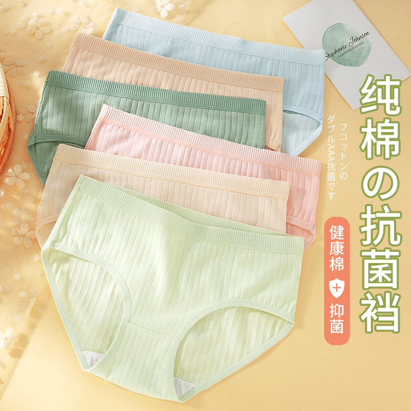 7A 抗菌綿下着女性の綿延長股下ベビーコットンシンプルな通気性女の子ミッドウエストブリーフ