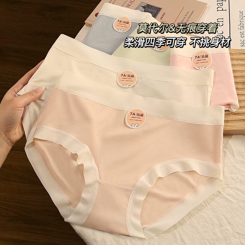 モーダルシームレス下着女性の 7A 抗菌綿底股通気性裸感覚女の子ミッドウエストブリーフ夏