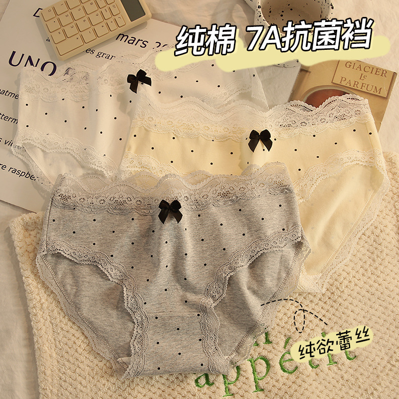 女の子のレースの下着女性の 7A 抗菌綿ボトムクロッチ快適で通気性のある薄いメッシュミッドウエストブリーフヌード感