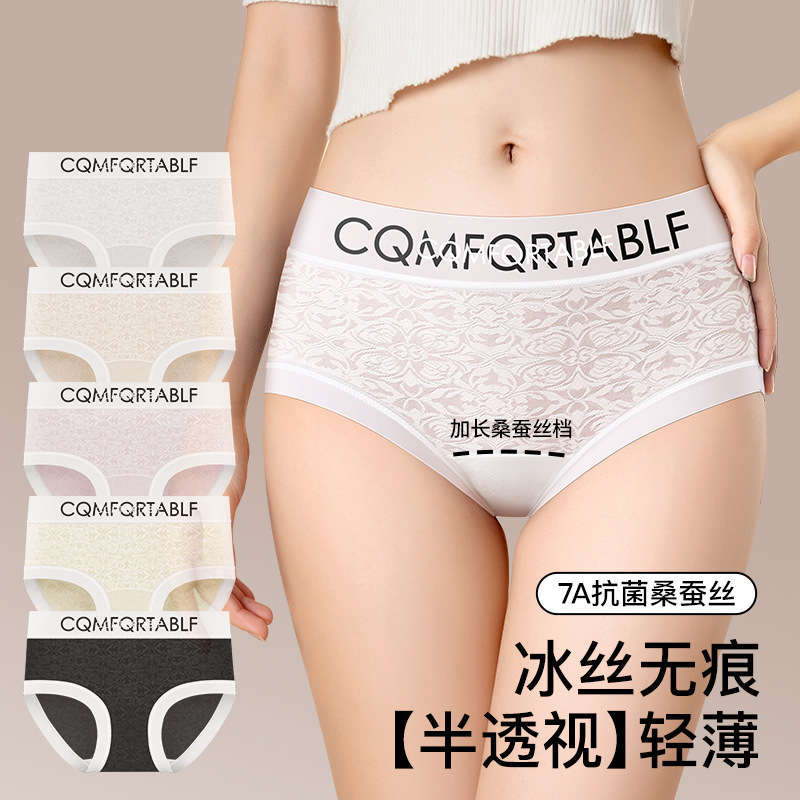 アイスシルクシームレス下着女性用 7A マルベリーシルク抗菌拡張ボトムクロッチ純粋な欲望セクシーな通気性ミッドウエスト女性のブリーフ