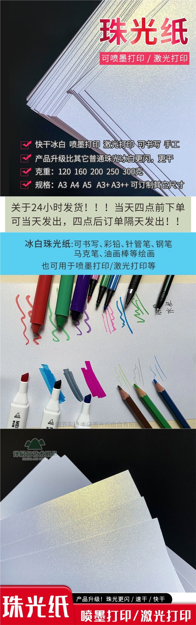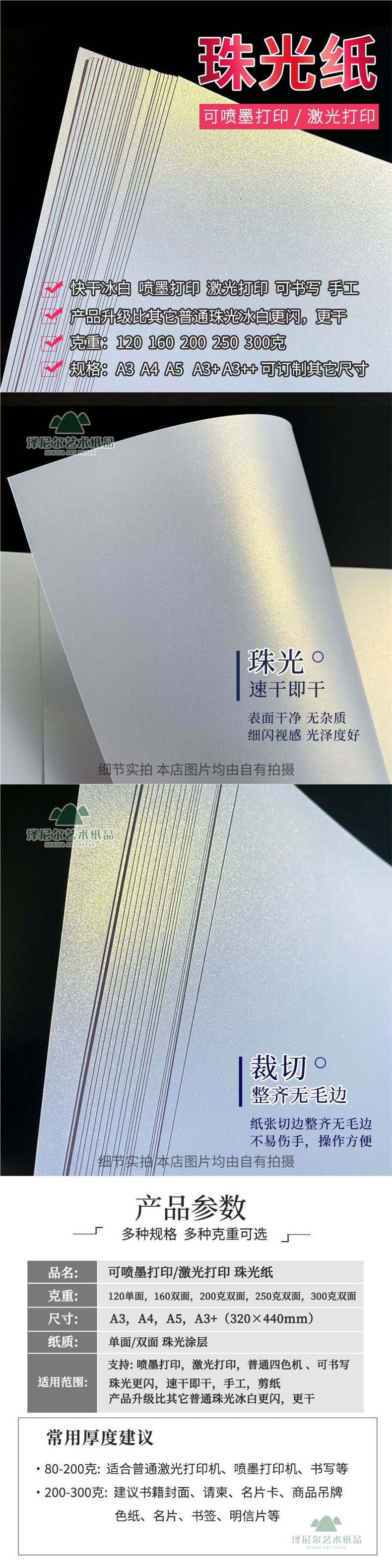 珠光纸a4A3升级版可喷墨,激光打印200.250绘画打印纸